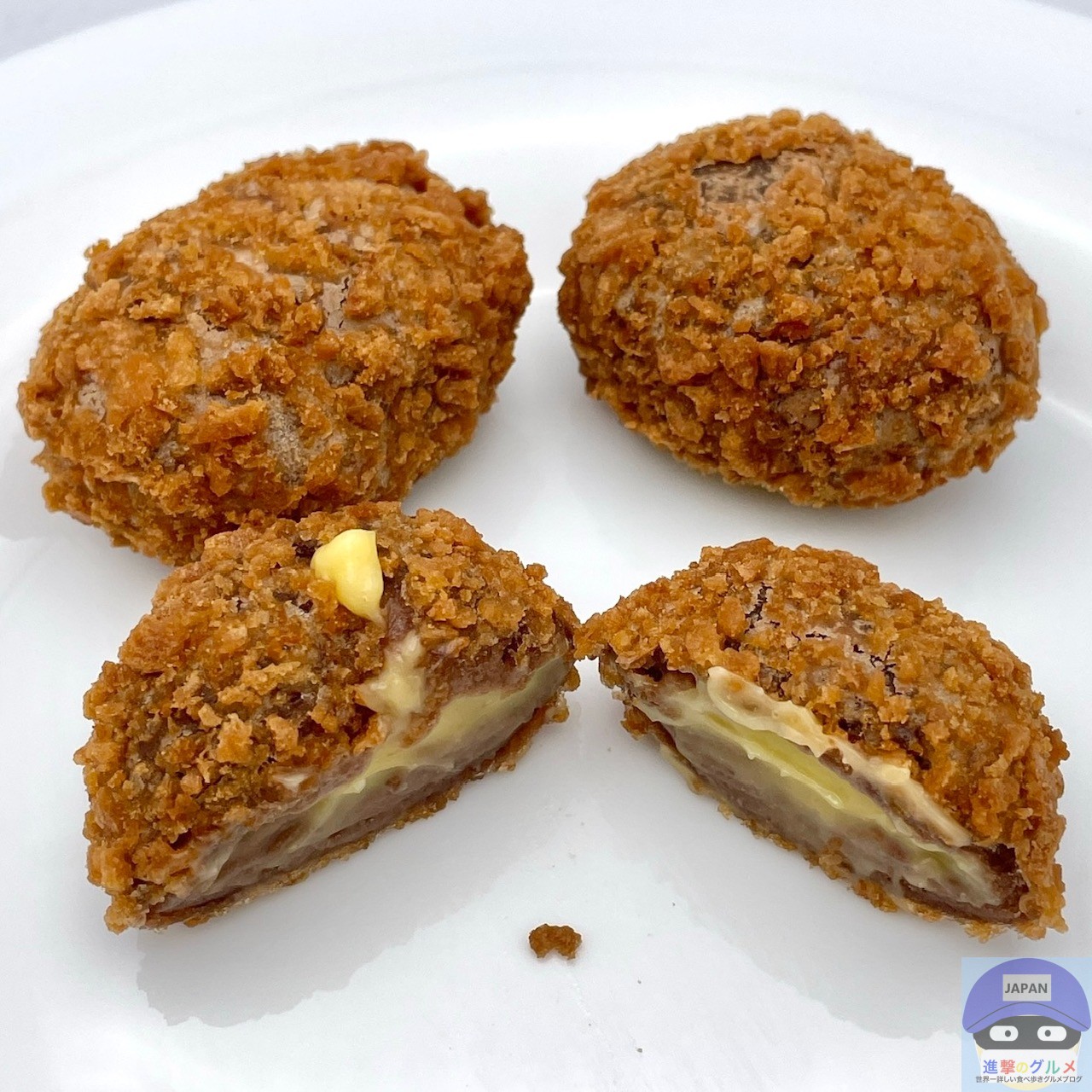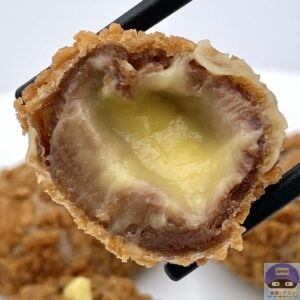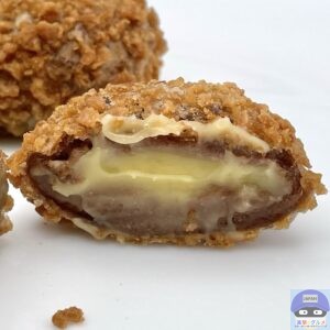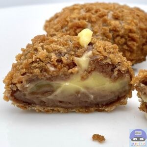 ザクザクのワッフルコーンを散りばめた、もちもち食感のドーナツ生地に、とろけるカスタードクリームを包んだホットスイーツです。