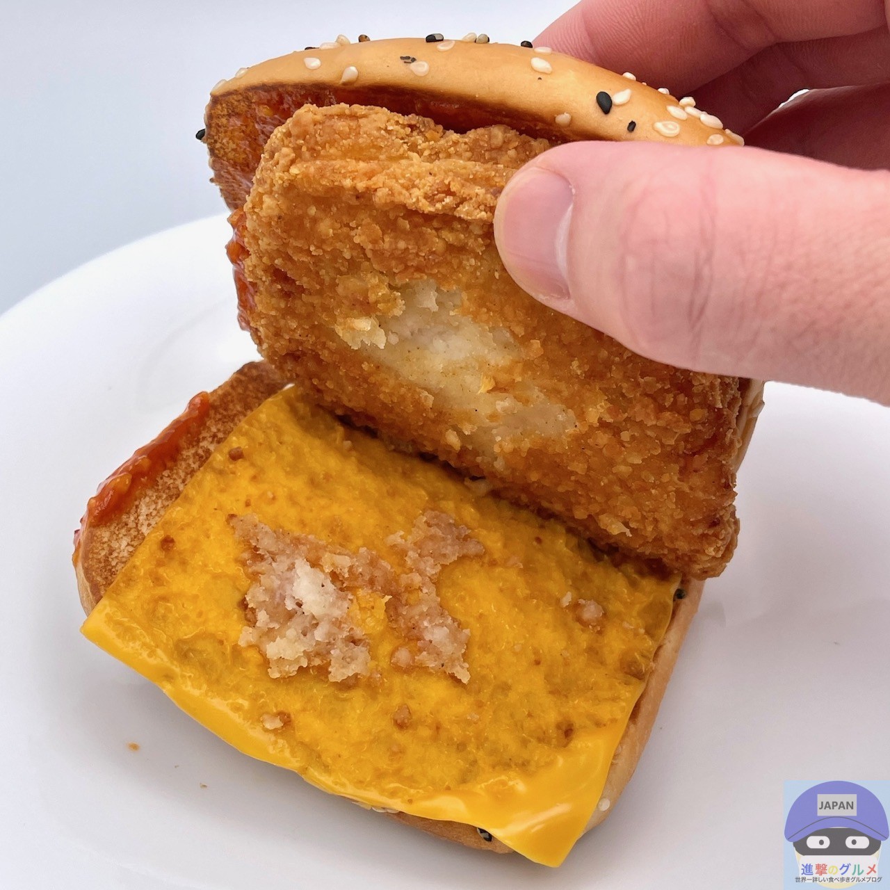 食べごたえがあり、ややシャキッとしたサワークリームタルタルソースのまろやかさ、チェダースライスチーズの少しコクを感じ、全体に対してソースが少ないため、特製バンズのパサつきが気になります。