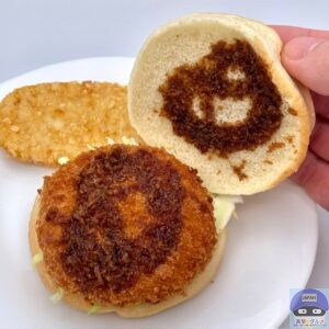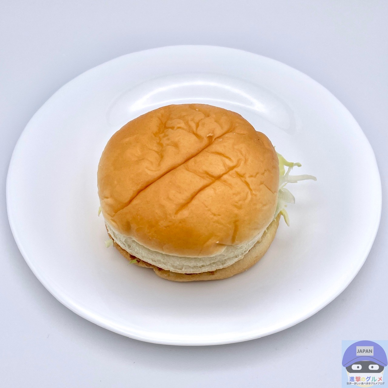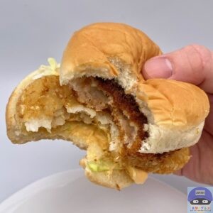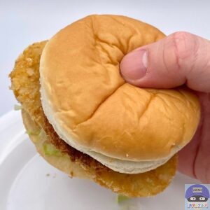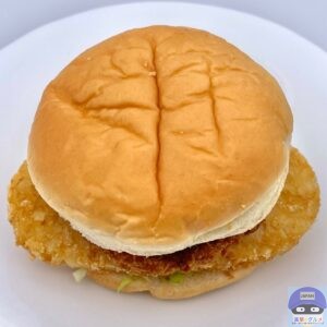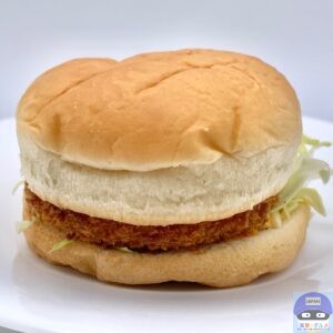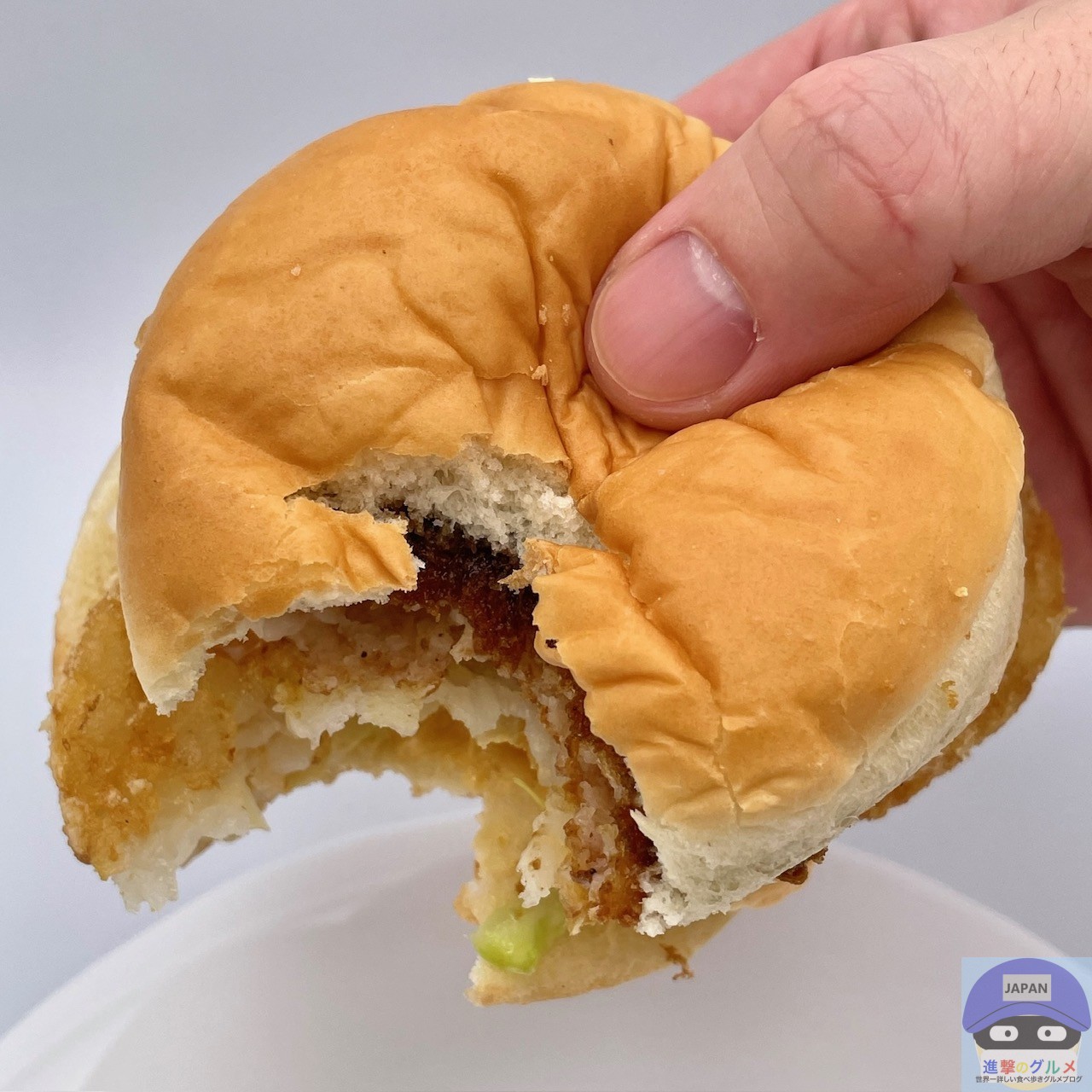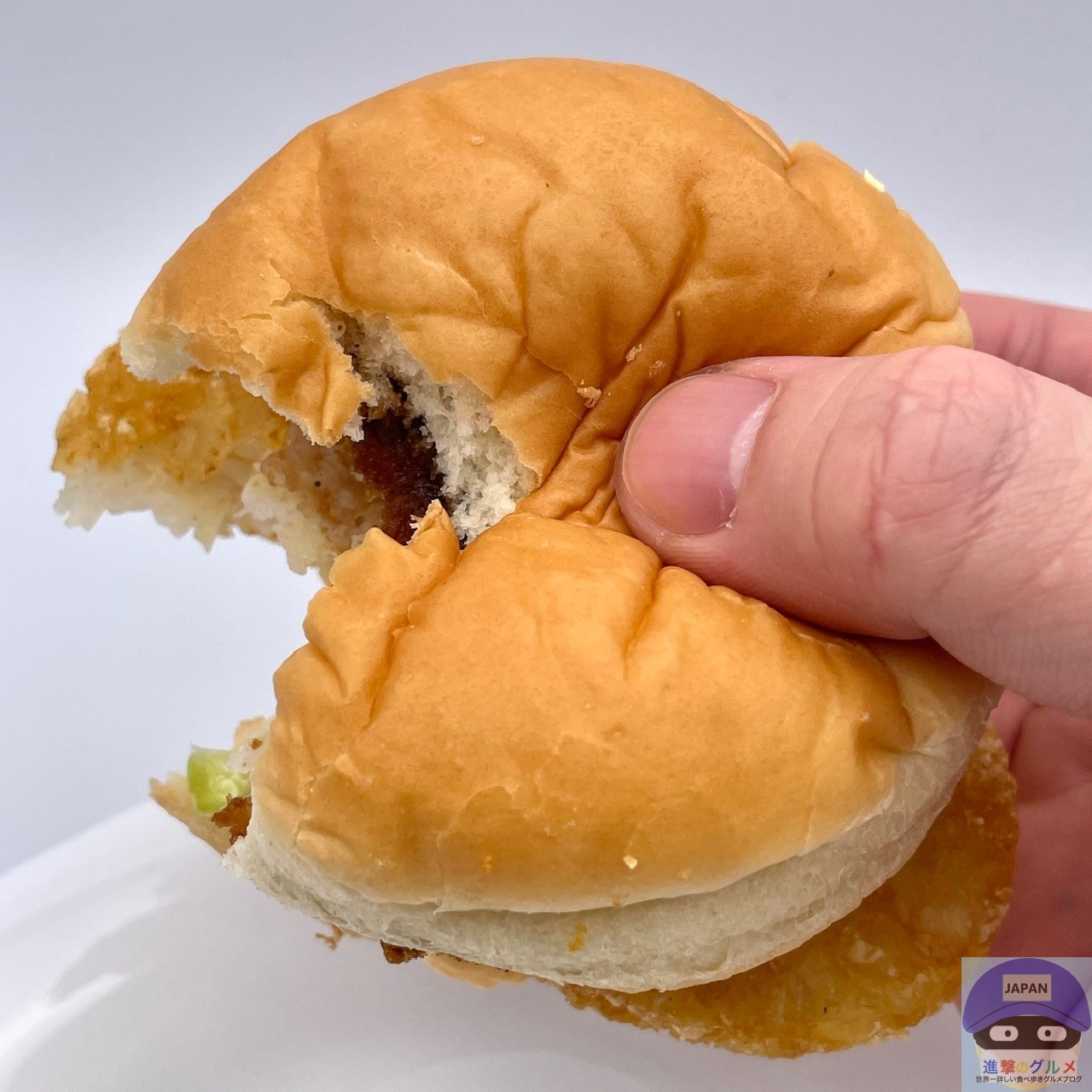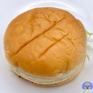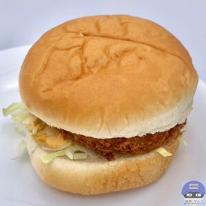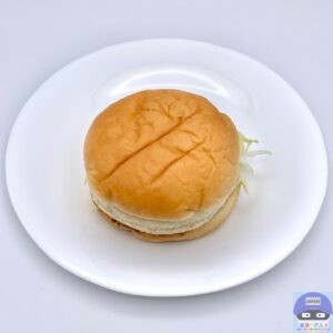 ふんわり食感のやわらかい蒸しバンズで、グラタンコロッケは、衣がサクッと香ばしく、少しもったりした口当たりのホワイトソースが入ってクリーミーです。