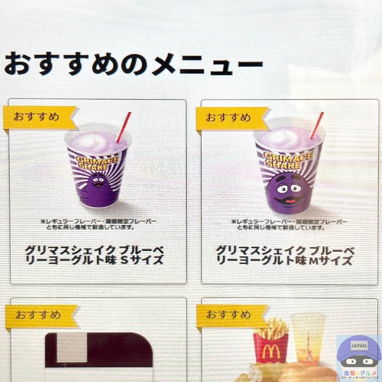 ・「グリマスシェイク ブルーベリーヨーグルト味(S : 190円~)/(M : 270円~)」