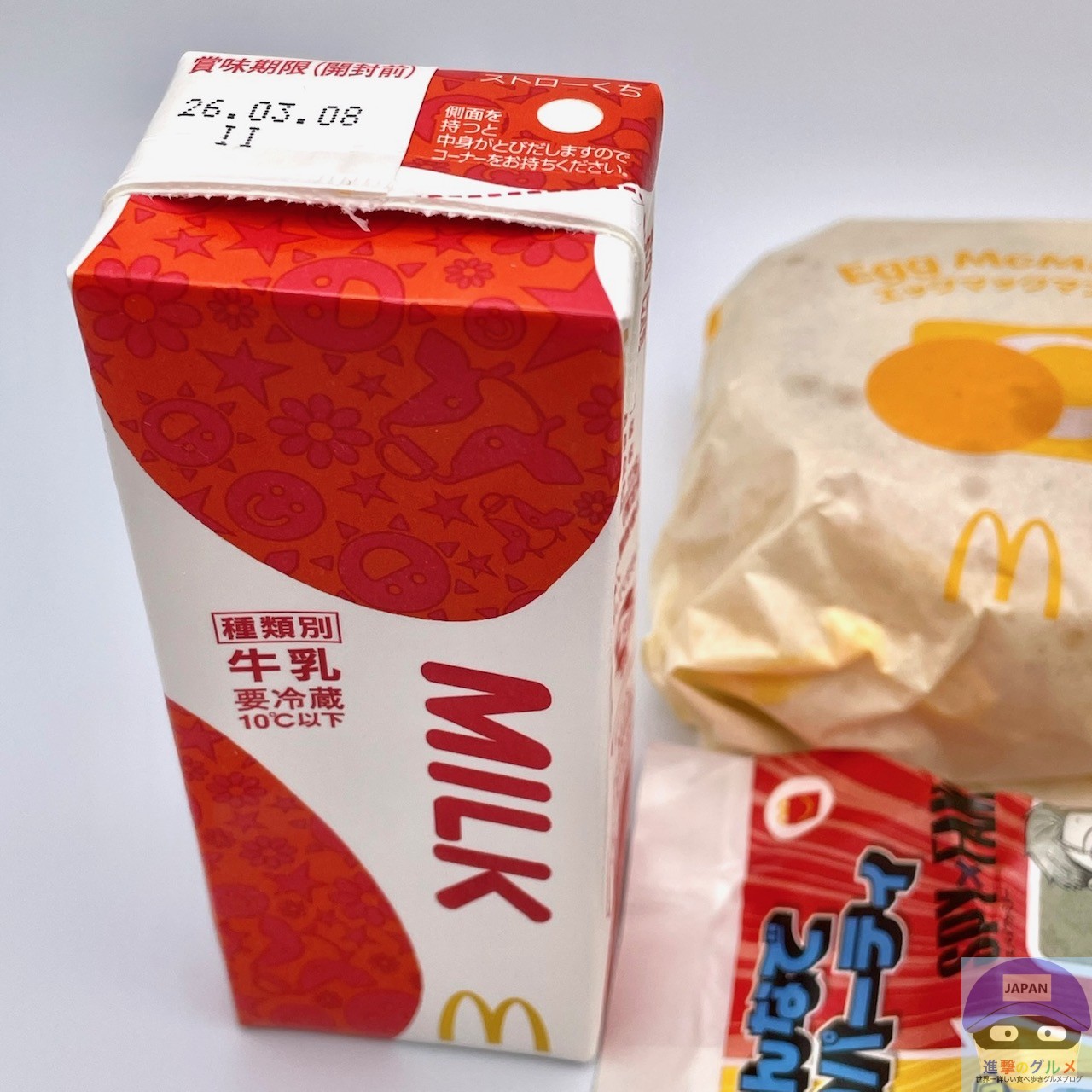 エッグマックマフィン、ハッシュポテト、ミルクです。