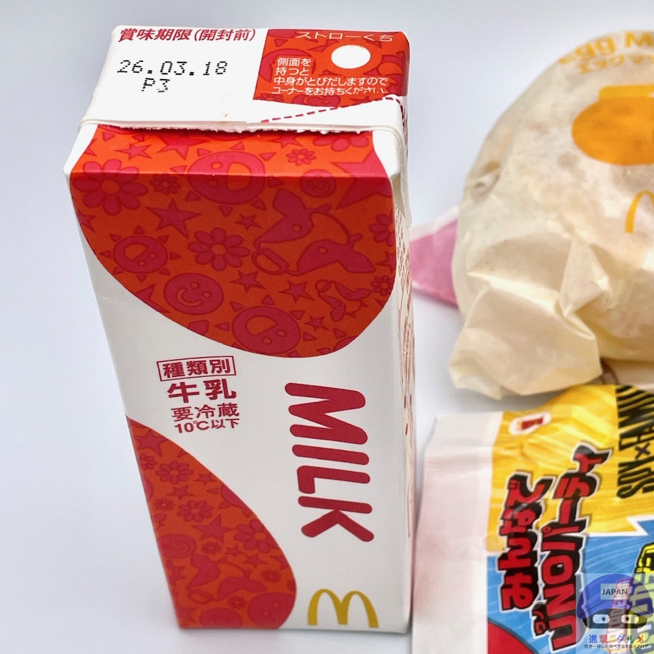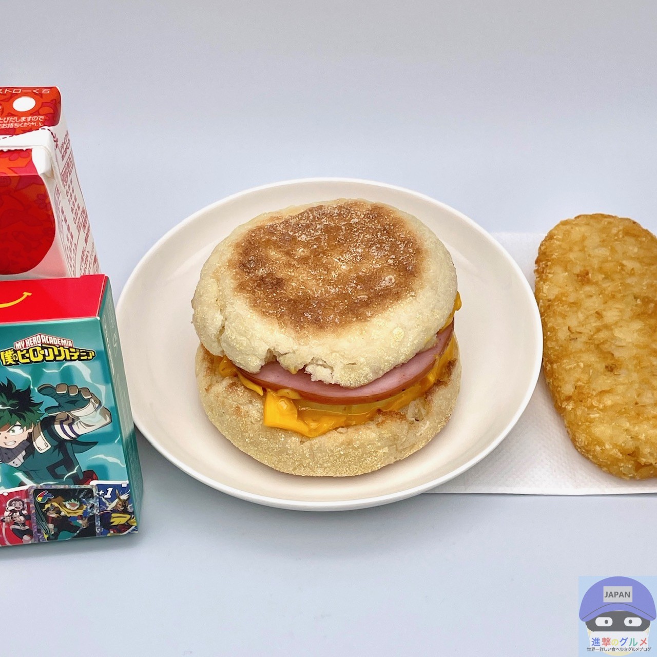 エッグマックマフィン、ハッシュポテト、ミルクです。