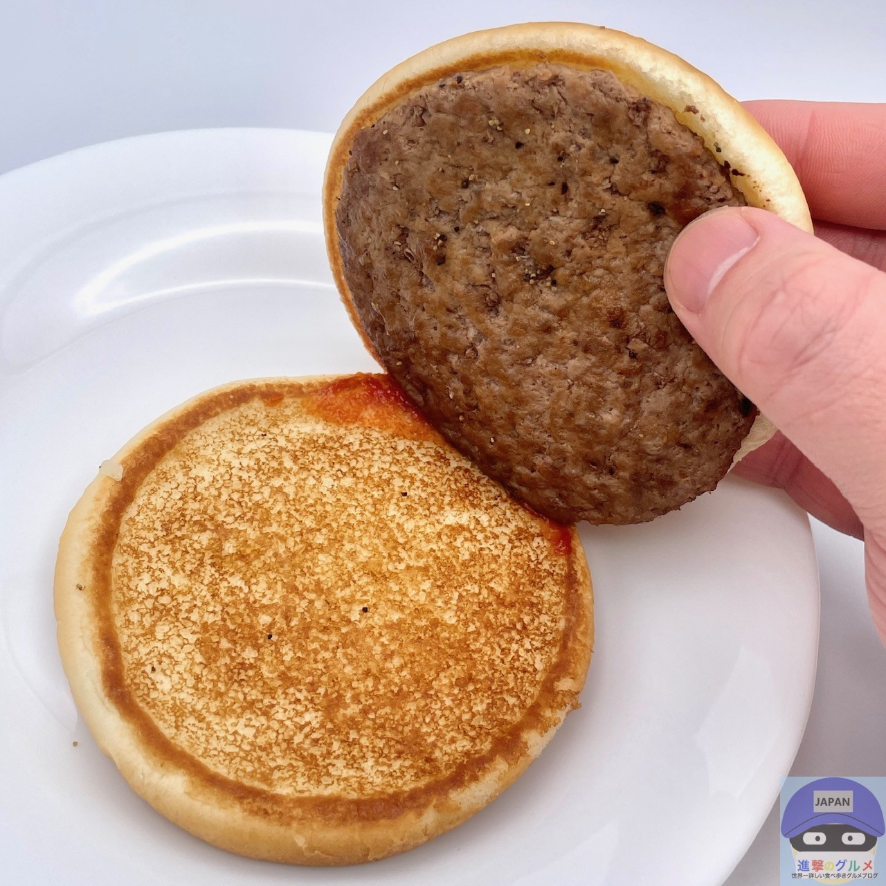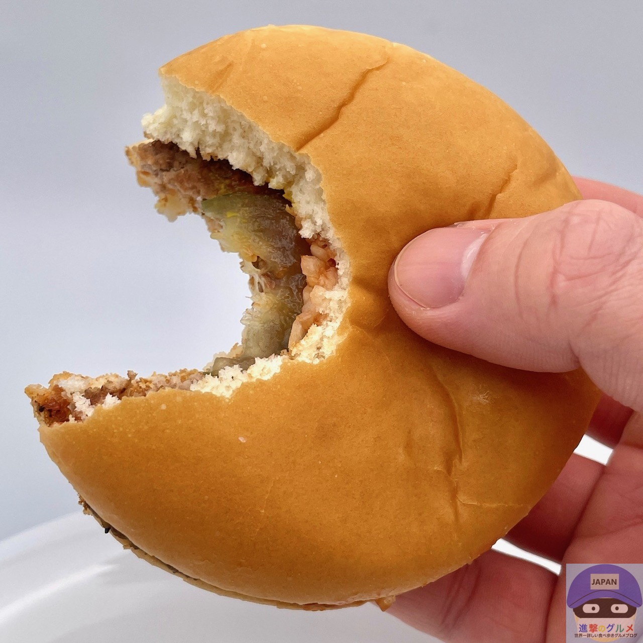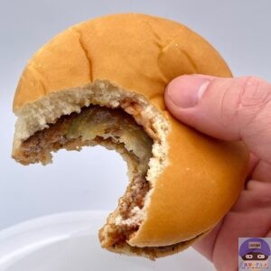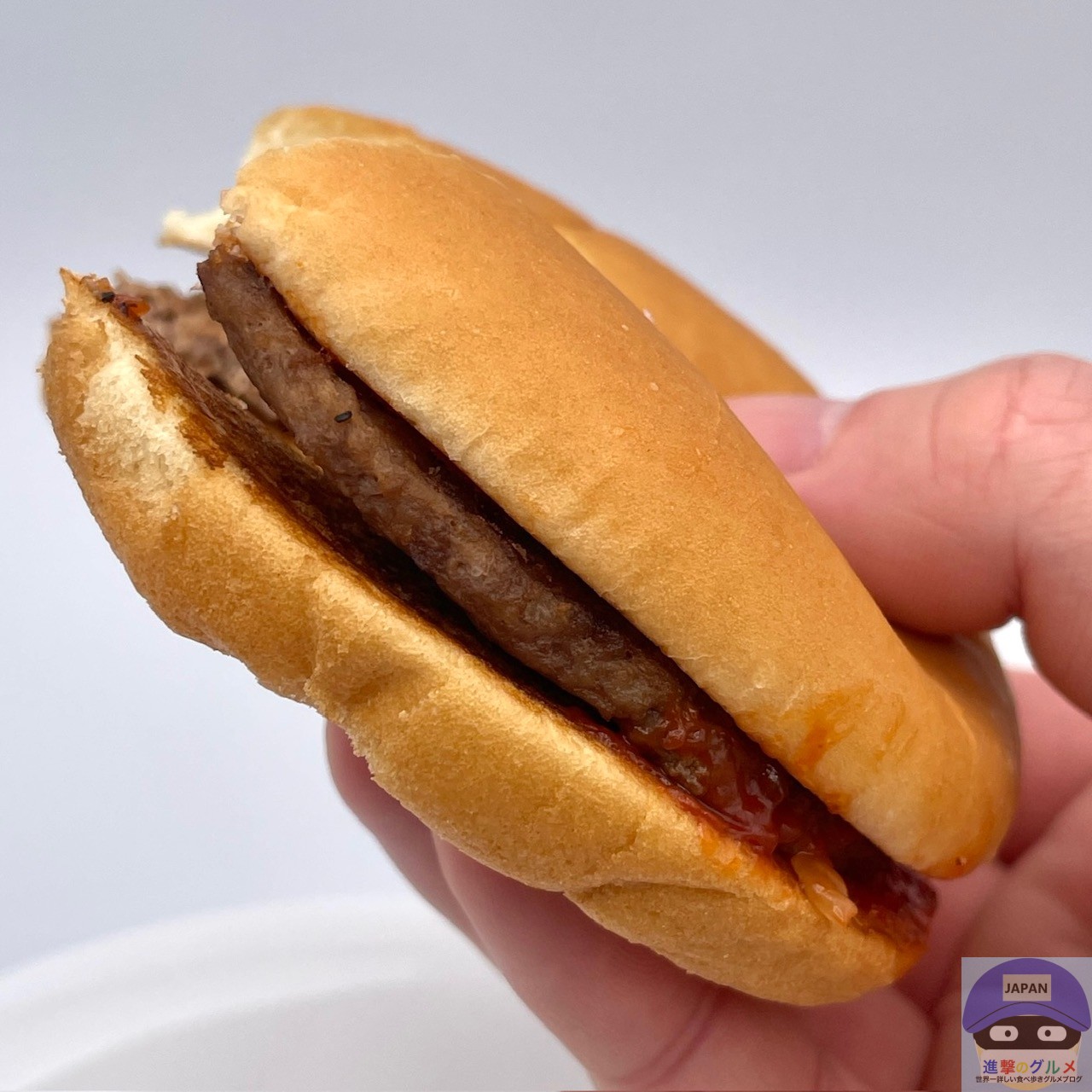 ビーフパティの肉肉しさと香ばしい旨み、ケチャップの甘みを感じ、ハッピーターン味シーズニングの甘じょっぱさが少し加わって美味しいです。
