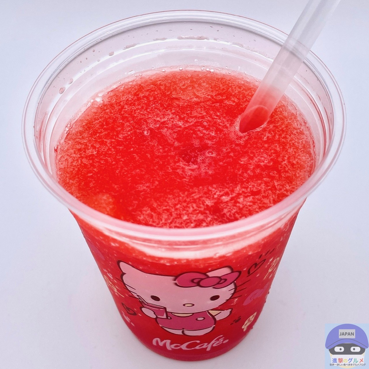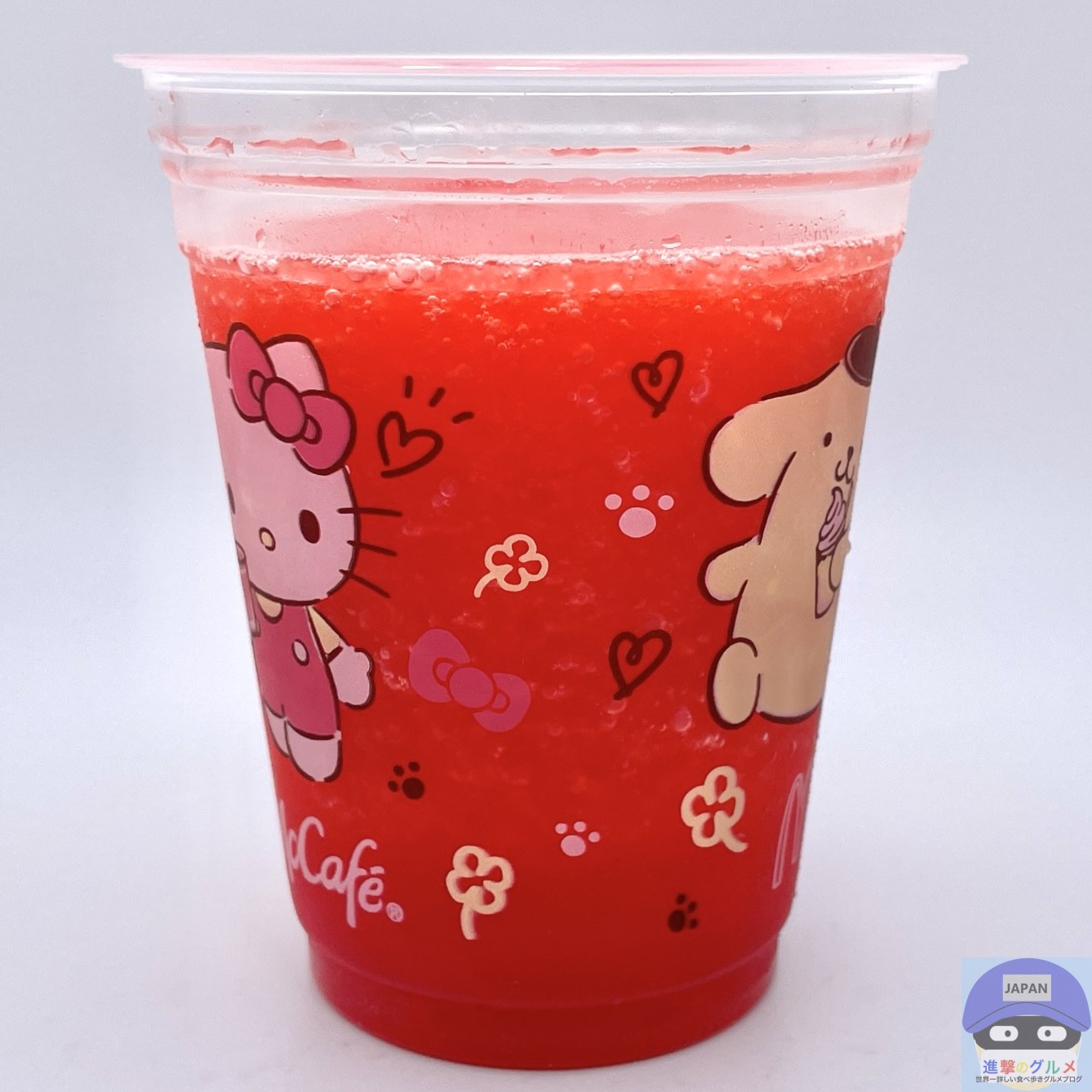 ハローキティとマクドナルドのスムージーが初コラボレーション、甘酸っぱくてジューシーないちごスムージーです。