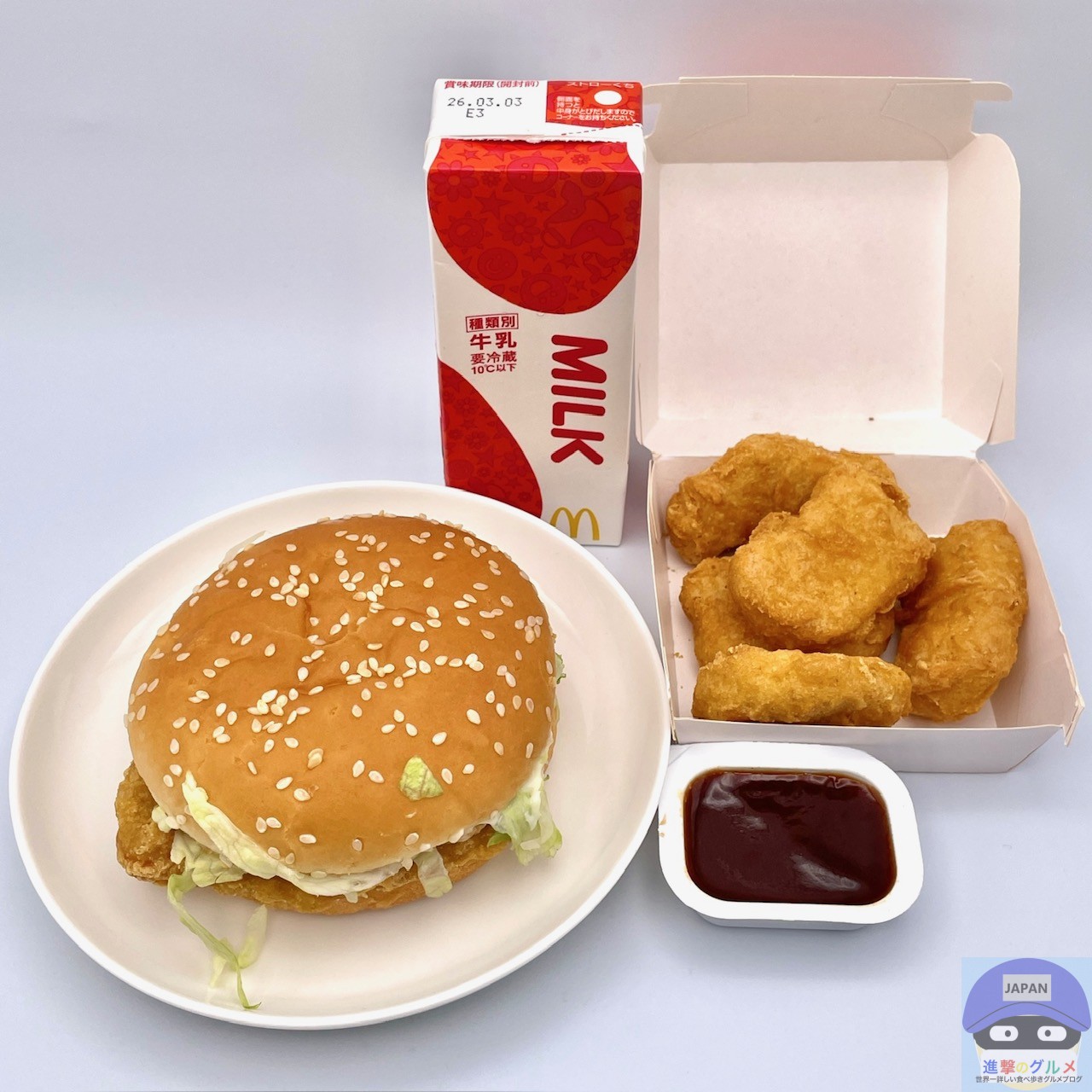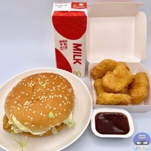 選べるサイドメニューとドリンクは、チキンマックナゲットとミルクにしました。