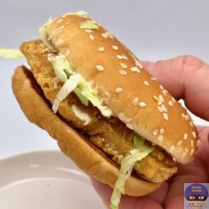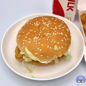 マックチキンは、マックチキンパティ・レタス・スイートレモンソースを、ゴマ付きバンズでサンドしています。