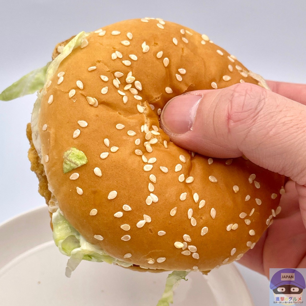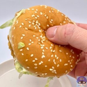 程よい食べごたえ、ふんわりしたゴマ付きバンズのため、あまりパサつくことなくおいしく食べられます。