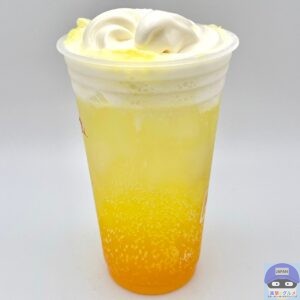 日向夏、甘夏果汁をブレンドしたさわやかな香りと甘さ、後に引くまろやかなヨーグルトの風味が楽しめる炭酸ドリンク「マックフィズ 和かんきつヨーグルト味」にソフトクリームをトッピングした、爽やかでリッチな味わいのデザートドリンクです。