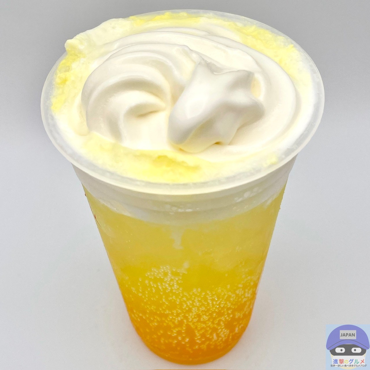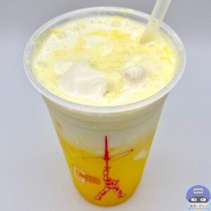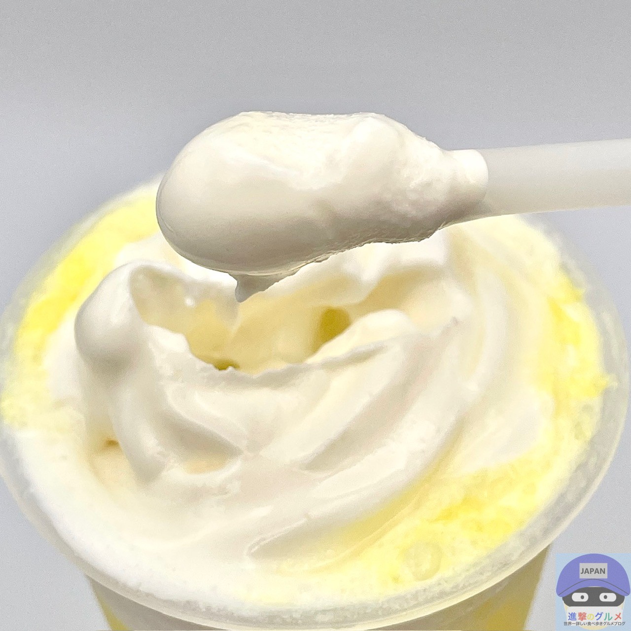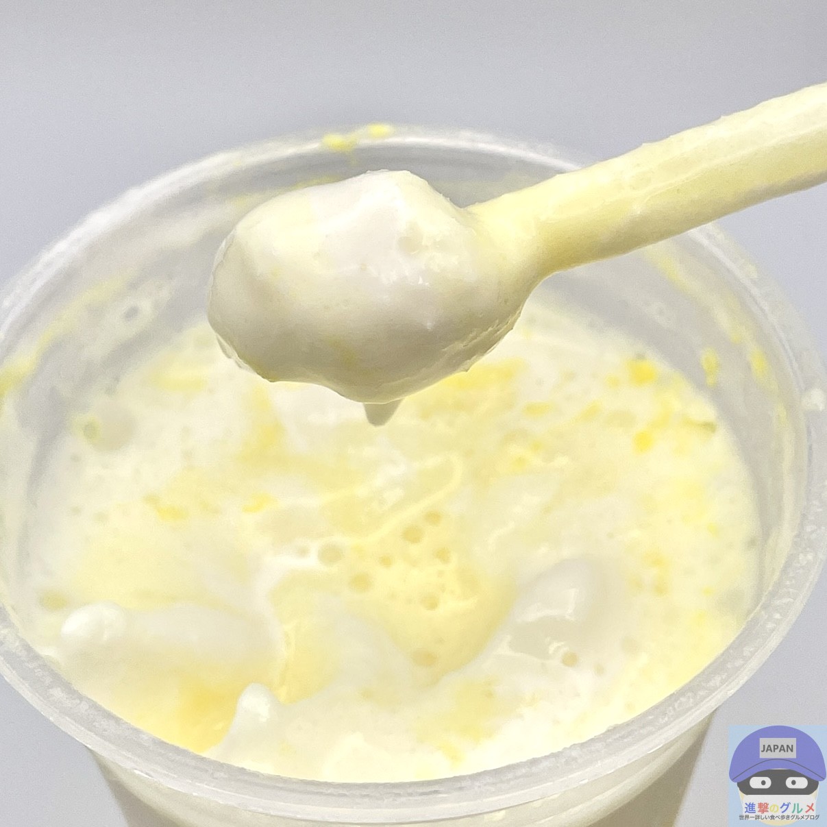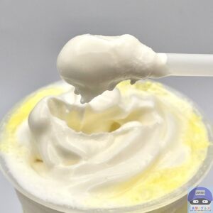 冷たくてしっかりした甘みが印象的、日向夏、甘夏果汁をブレンドした柑橘系のさわやかな香りと甘さを少し感じ、まろやかなヨーグルトの風味がやや広がります。
