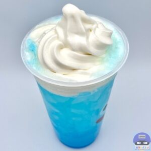 ヨーグルトのやさしい甘さとソーダの爽やかな風味の炭酸ドリンクに、ソフトクリームをトッピングしたデザートドリンクです。