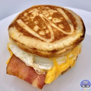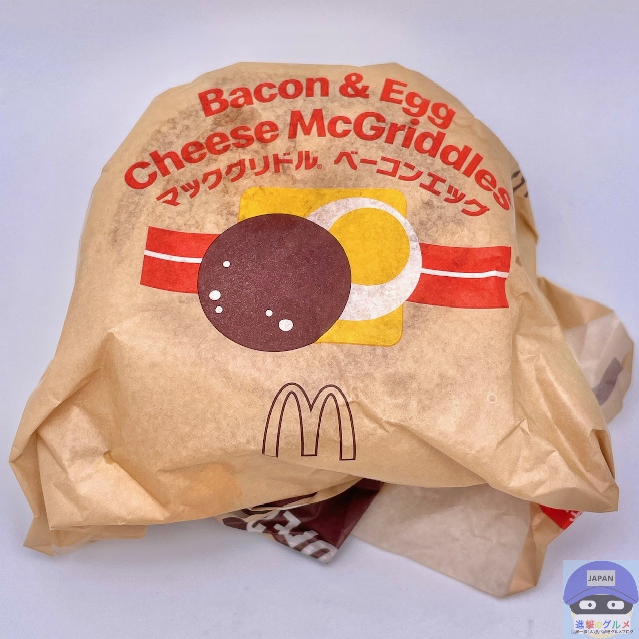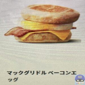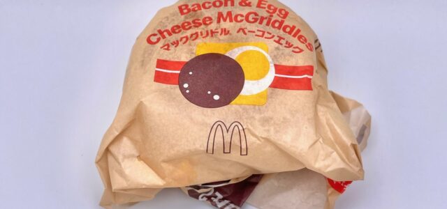 今回は、「マックグリドル ベーコンエッグ(340円~)」を紹介します。