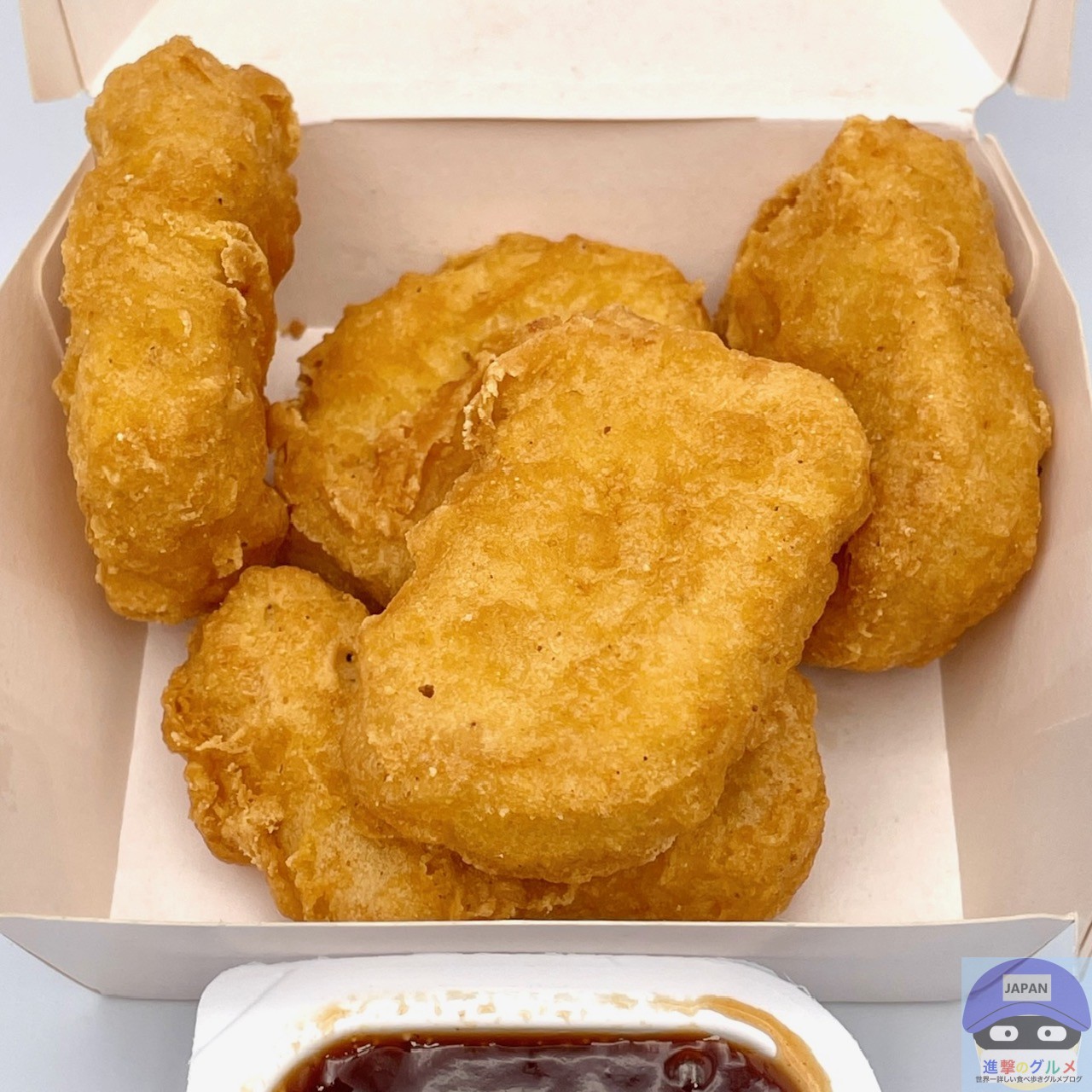ゴールデンブラウンのチキンマックナゲットが5ピース入り、香ばしい香りが食欲をそそります。