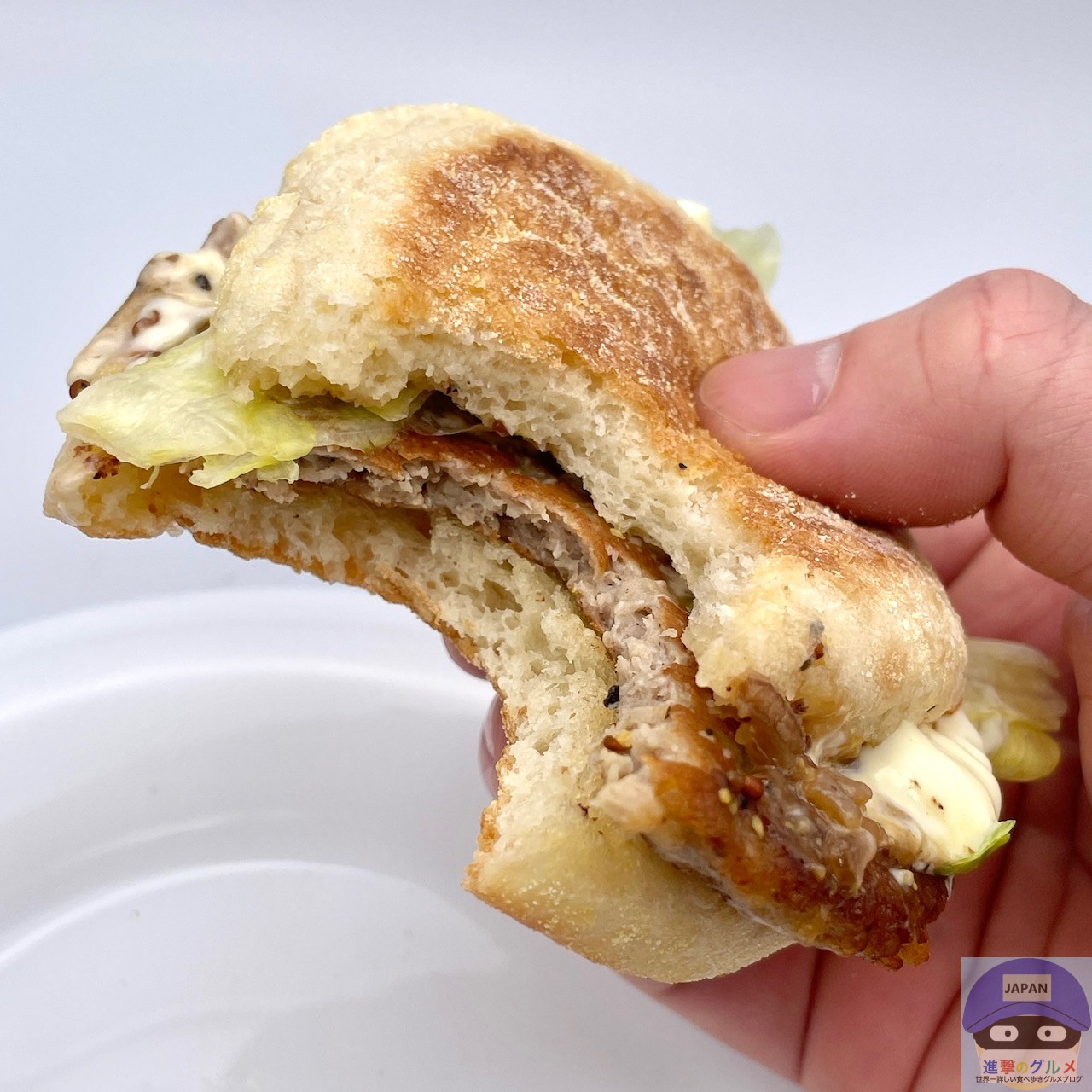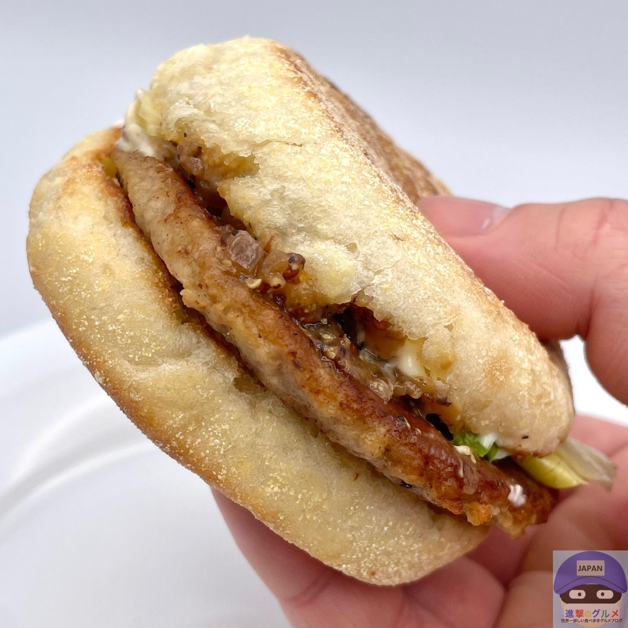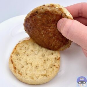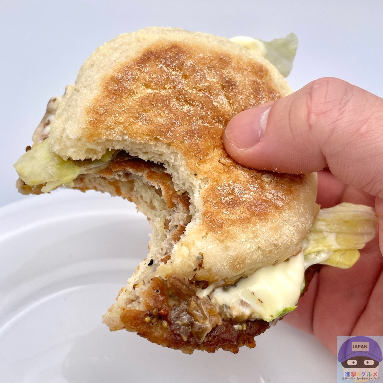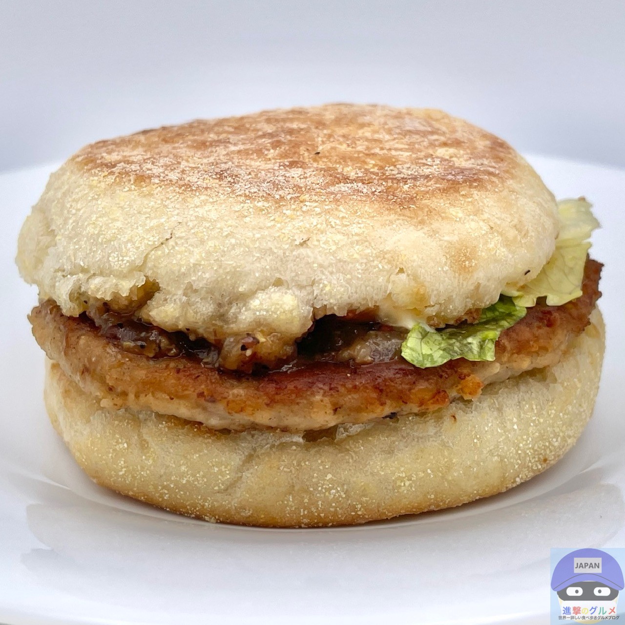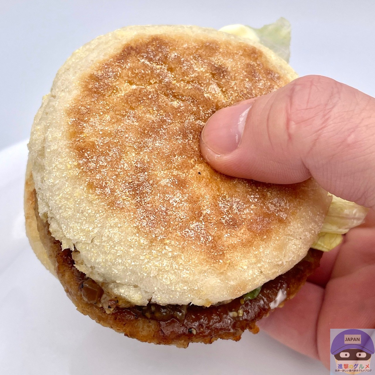 もっちり食感のイングリッシュマフィンの味わい、やわらかくてジューシーなソーセージパティの旨みとピリ辛さを感じます。