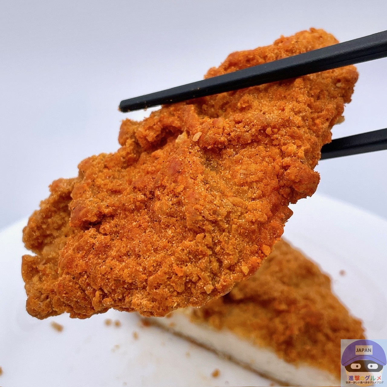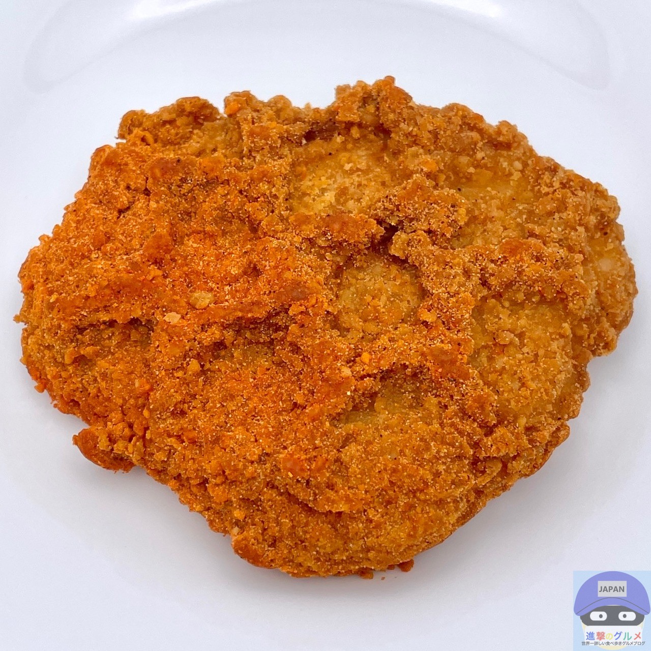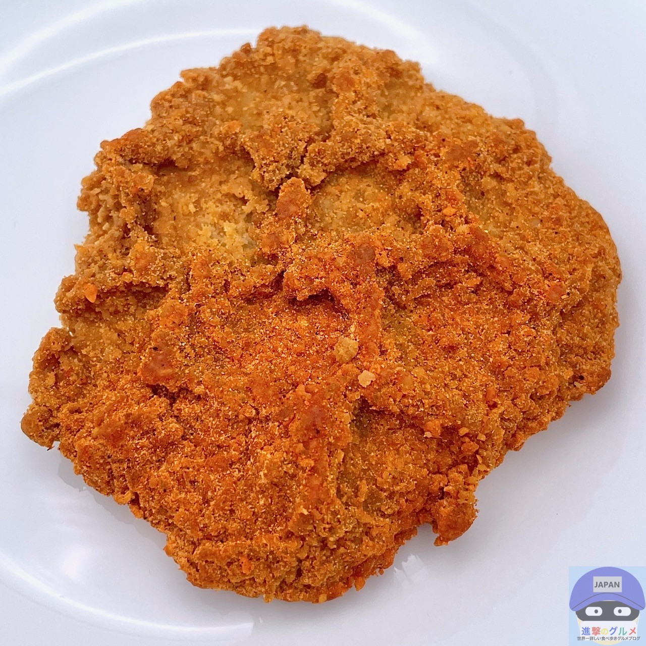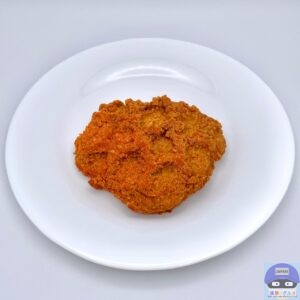 やや大きめのフライドチキンにレッドペッパー味シーズニングがかかったシンプルな見た目です。