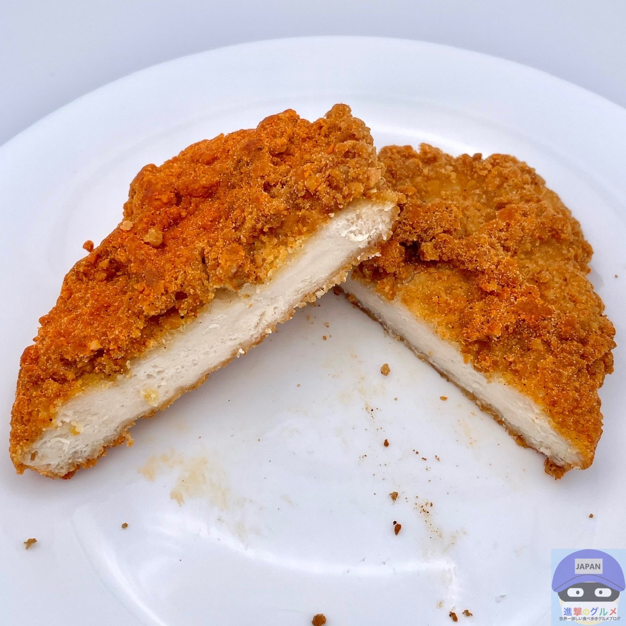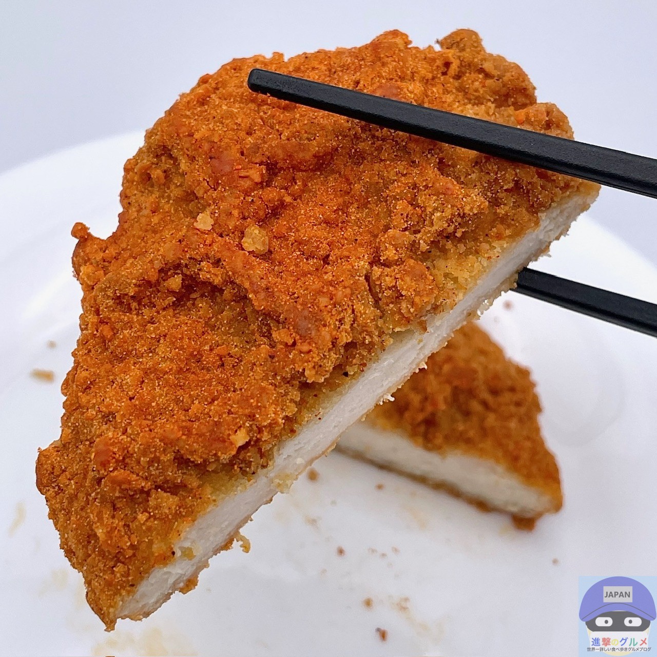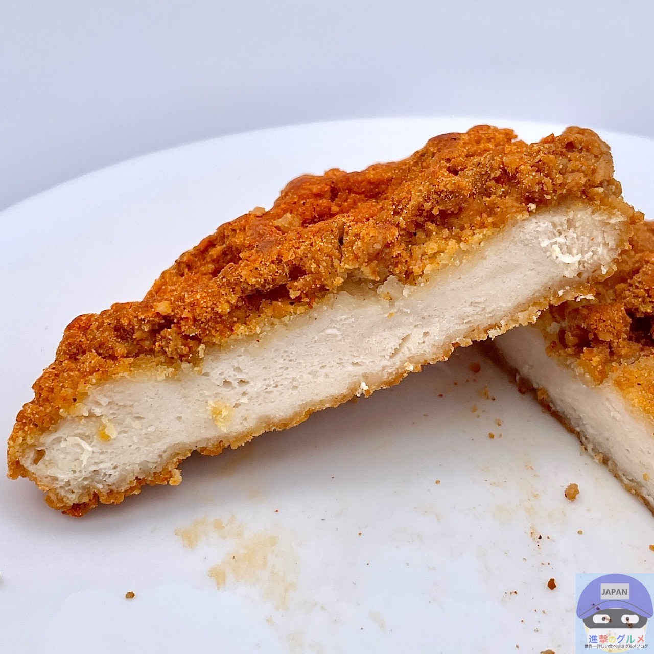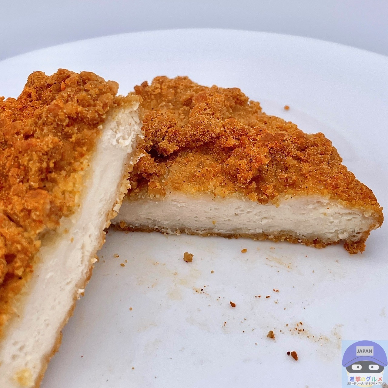 やや大きめのフライドチキンにレッドペッパー味シーズニングがかかったシンプルな見た目です。