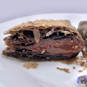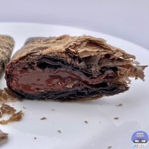 何層にも重ねたパイ生地に、アーモンド入りのチョコクリームが入っています。
