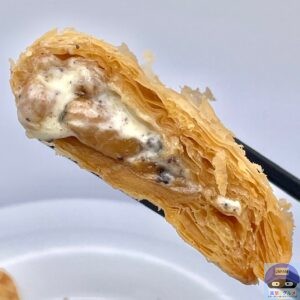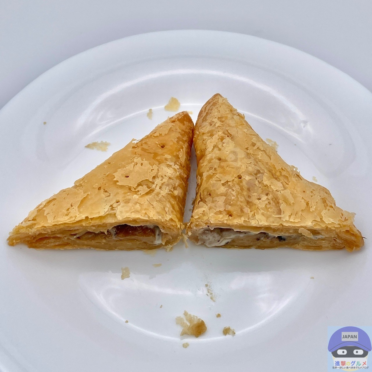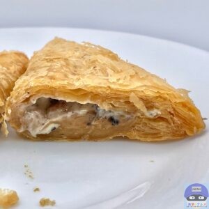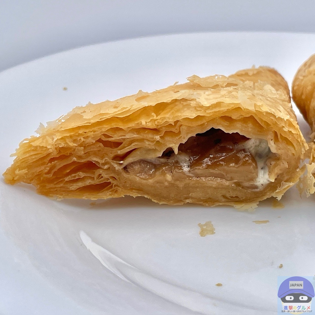 クリームの甘みにチョコとココアクッキーの風味、パイ生地にしみた油のこってり感も合わさって”ティラミス風”、こだわりの美味しさに仕上がっています。