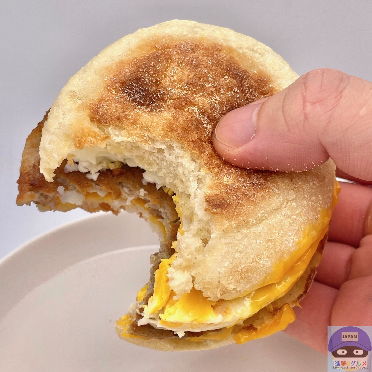 もっちり食感のイングリッシュマフィン、塩気とブラックペッパーの効いた少しジューシーなソーセージパティが香ばしく、食べごたえがあります。