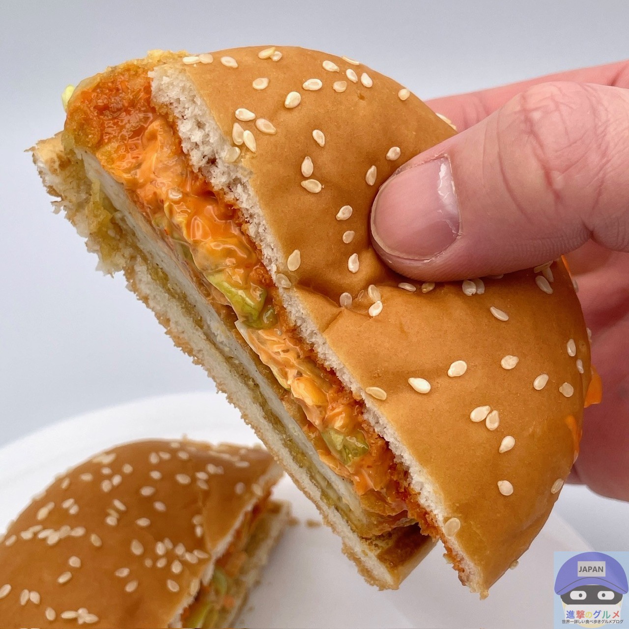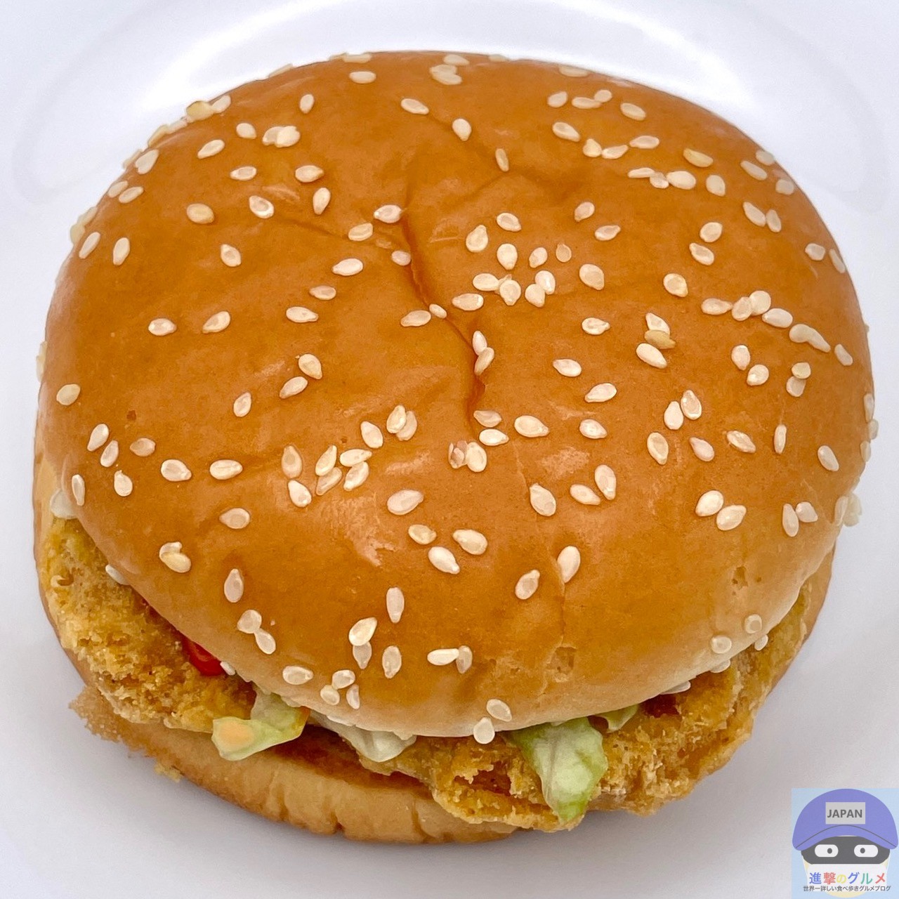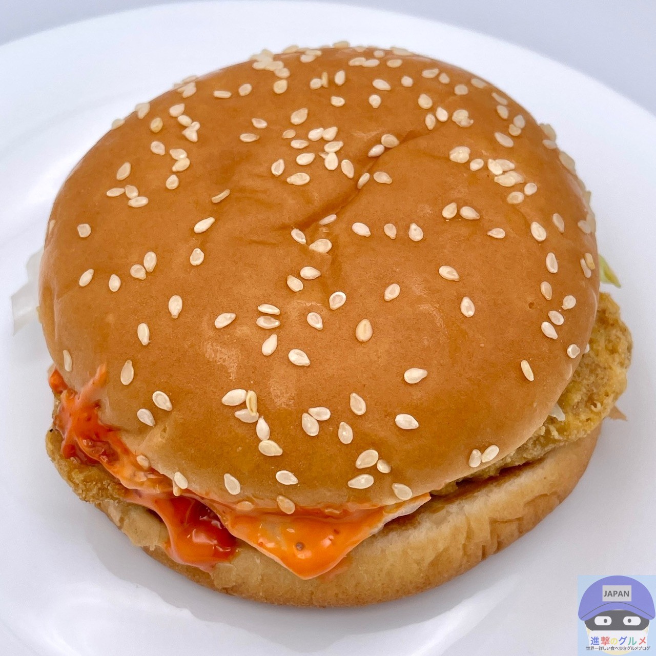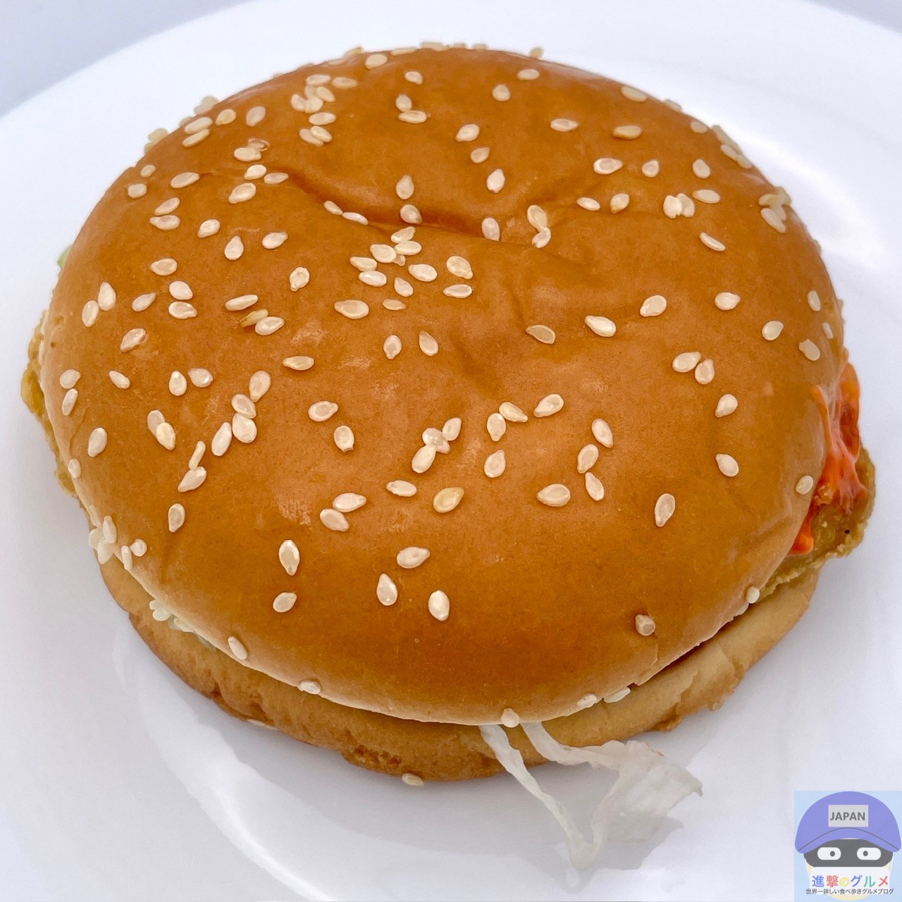マックチキンパティ・レタス・スパイシーソースを、ゴマ付きバンズでサンドしています。