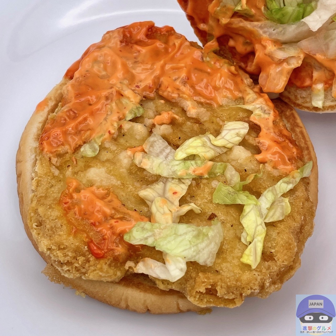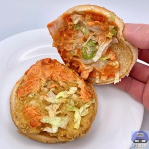 スパイシーソースは、ガーリックの旨みが効いて程よい酸味でまろやか、唐辛子系の辛味でヒリヒリと辛口、シャキッと食感のレタスが少しアクセントです。