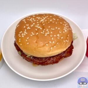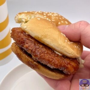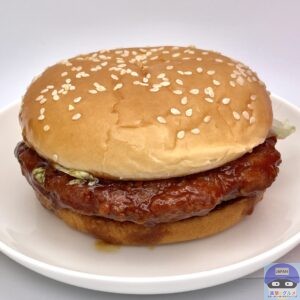 てりやきチキンフィレオは、チキンパティ・てりやきソース・レタス・スイートレモンソースを、ゴマ付きバンズで挟んでいます。
