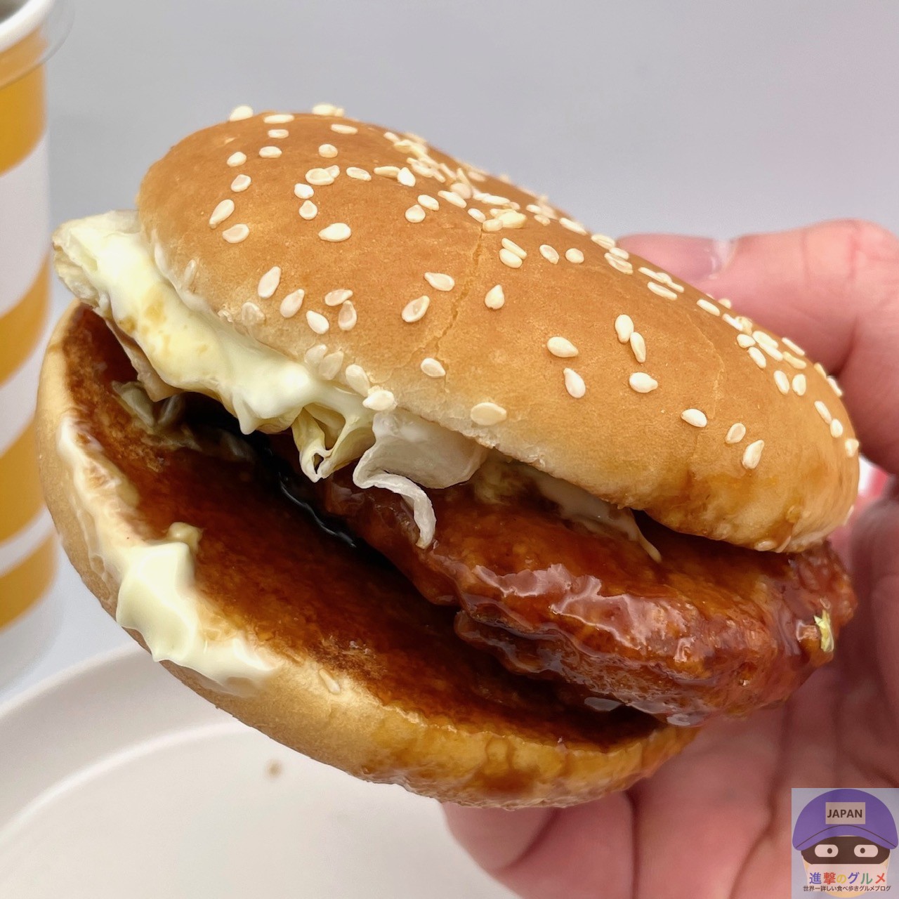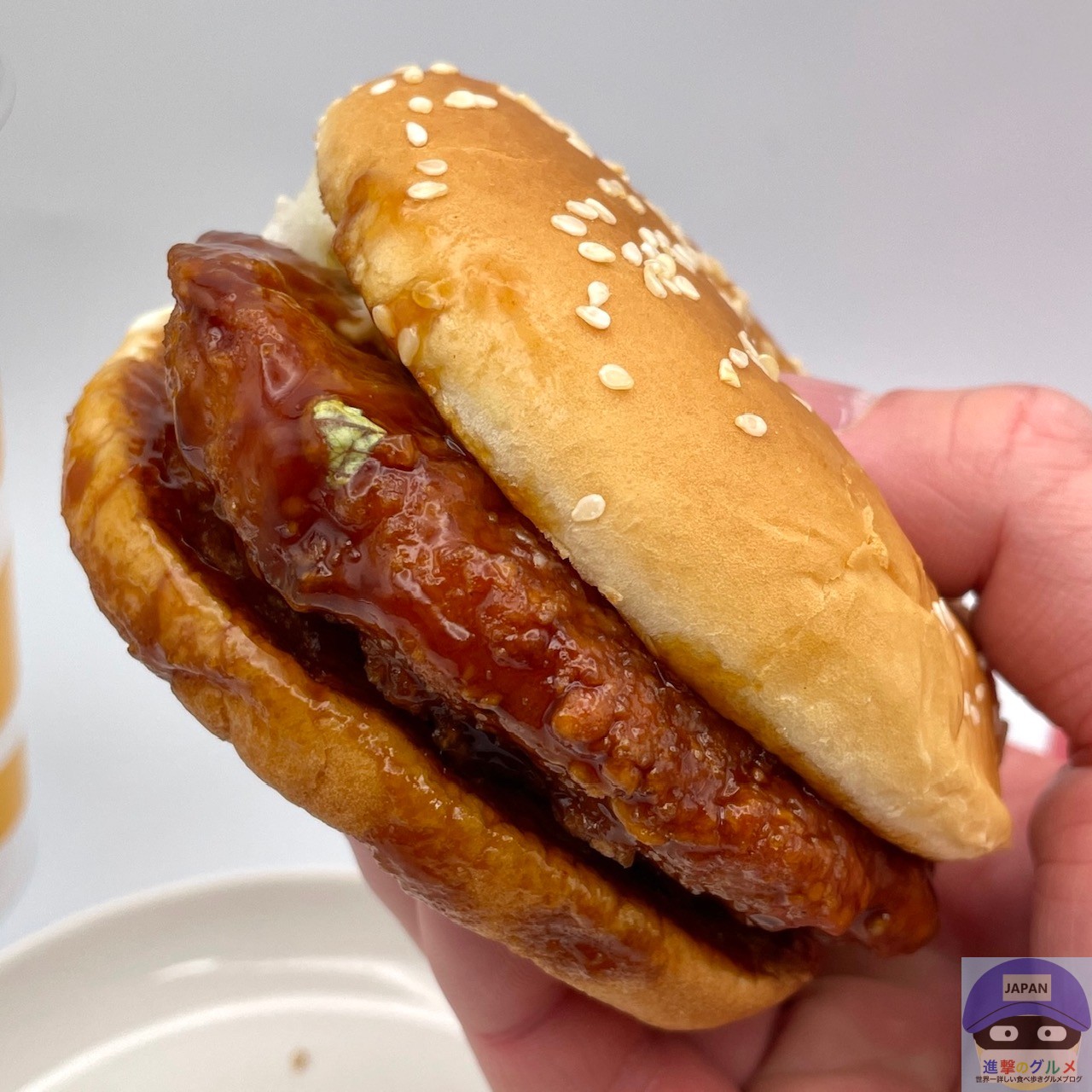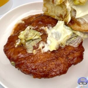 こってりした味わいがゴマ付きバンズと相性抜群、どんどん食べすすめてしまう美味しさです。