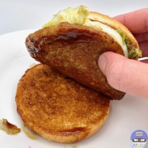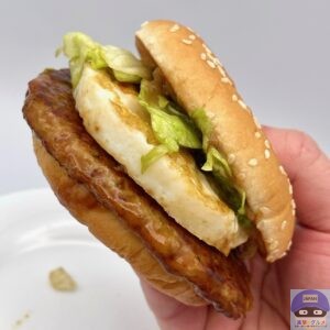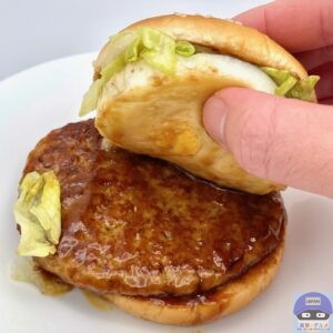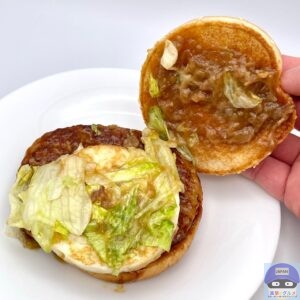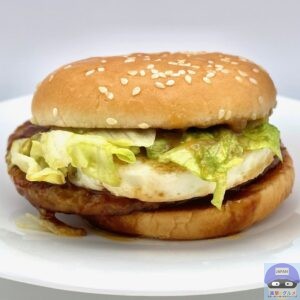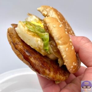 やわらかいポークパティの香ばしくて程よくスパイスのきいた旨み、てりやきソースの甘み、レタスのシャキッと食感がクセになります。