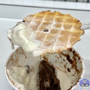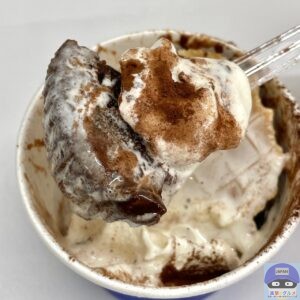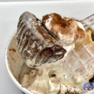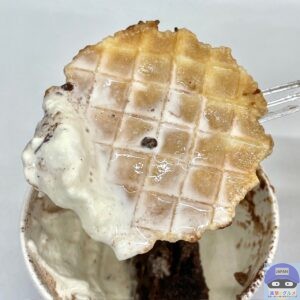 生地の中からとろけだすチョコレートガナッシュ、サクサク食感のワッフルチップ、ココアパウダーもソフトクリームとマッチします。