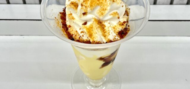 なめらかプリンとソフトクリームを合わせて、贅沢な味わいでたまりません。
