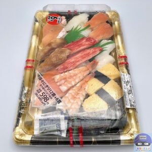お得な「増量フェア」で50%増量、コンビニ寿司が合計18貫入っています。