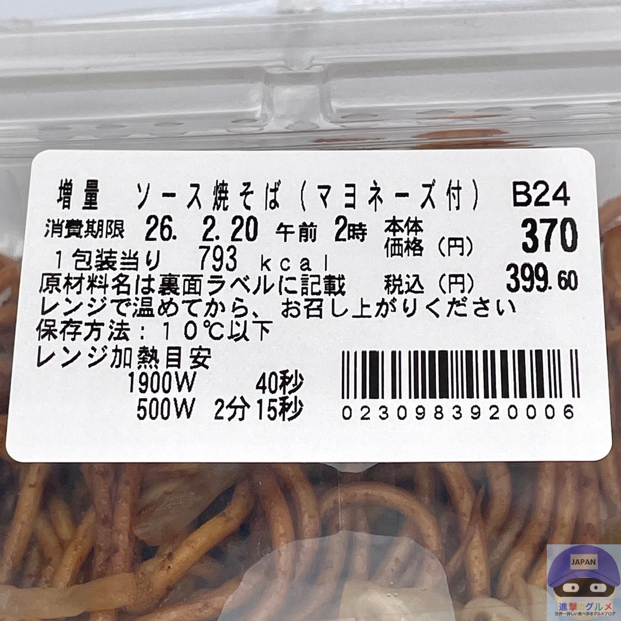 「ソース焼そば マヨネーズ付 麺&マヨネーズ50%増量(399円)」