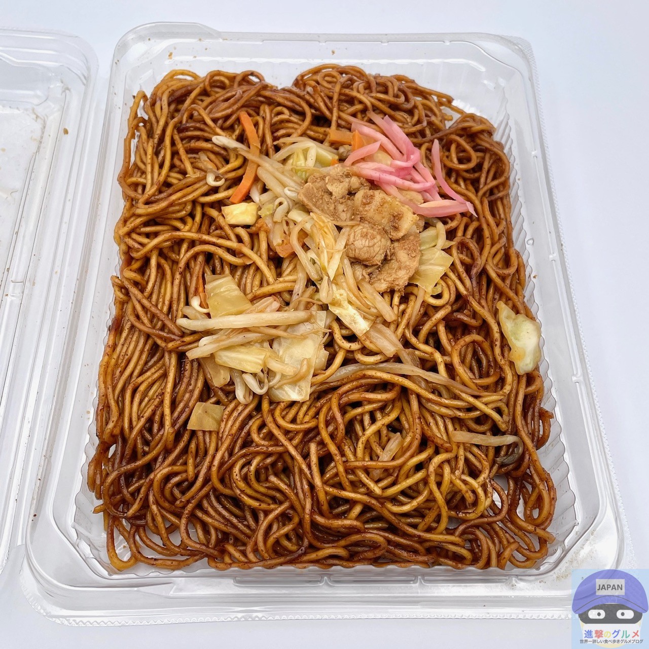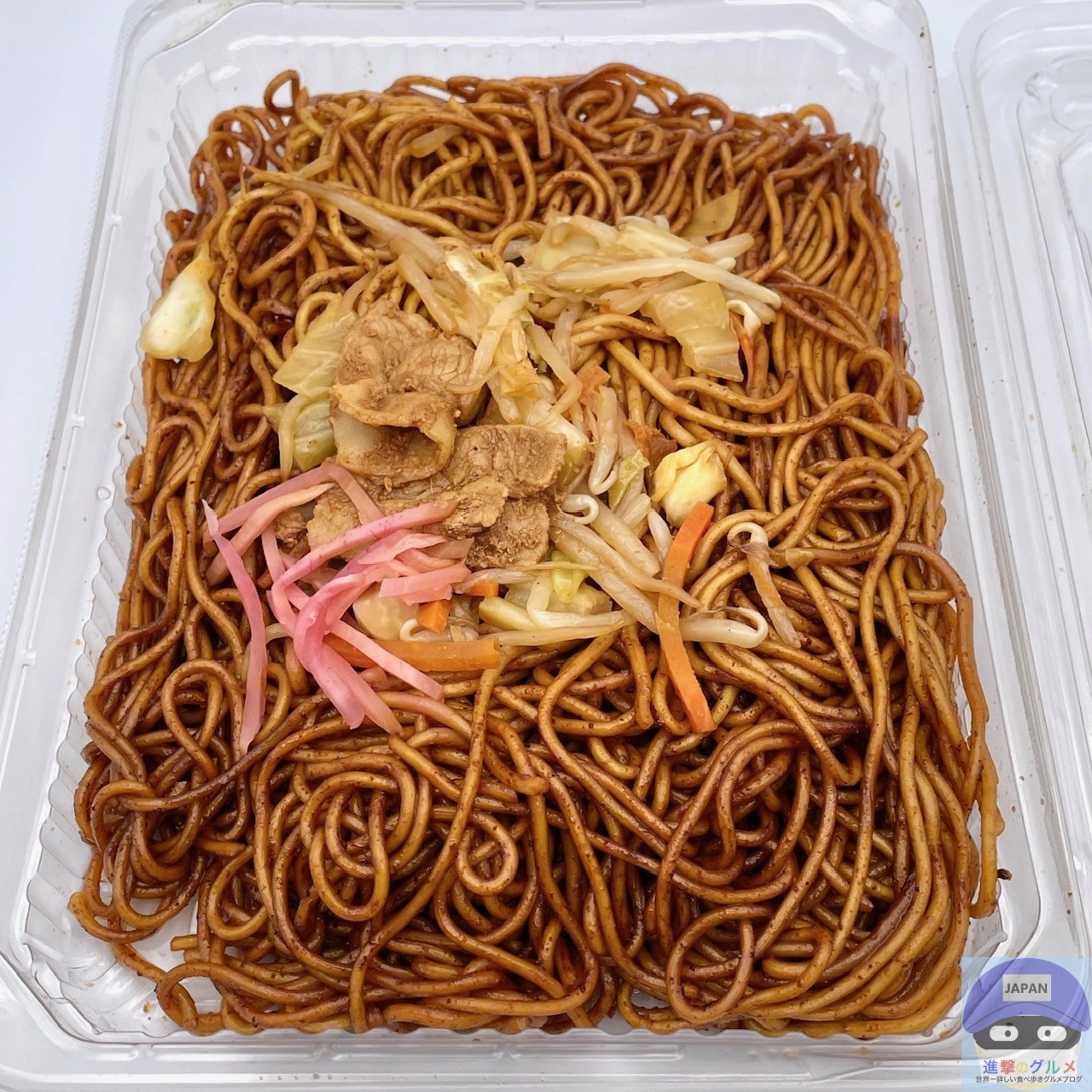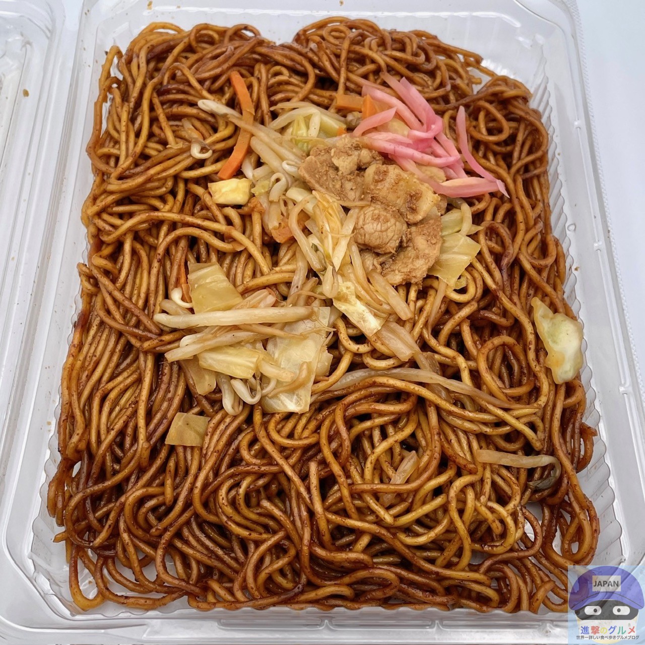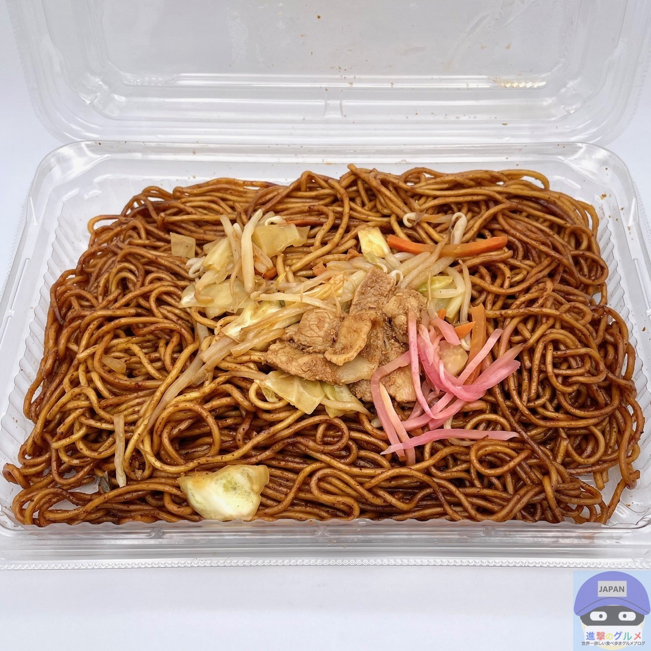 大盛り麺・ソース・豚肉・もやし・キャベツ・紅生姜などで作られています。