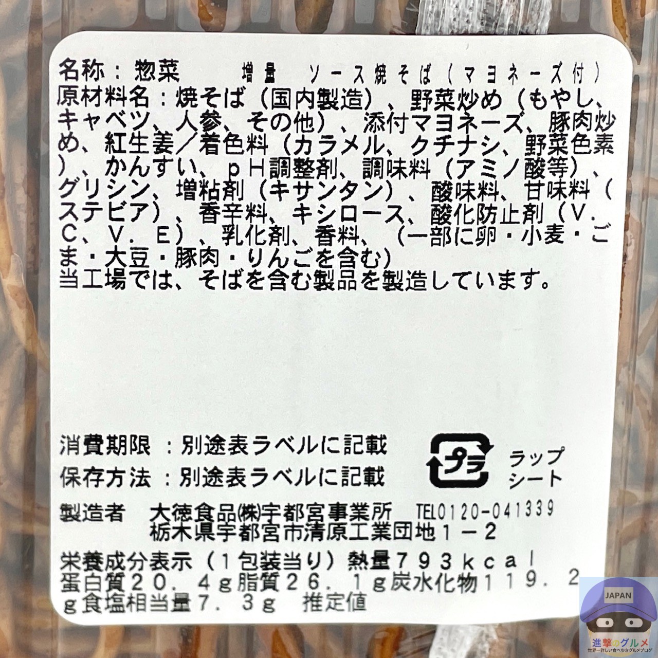 カロリーは793kcal、重さは容器を含めて468gです。