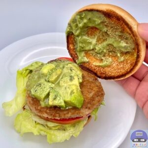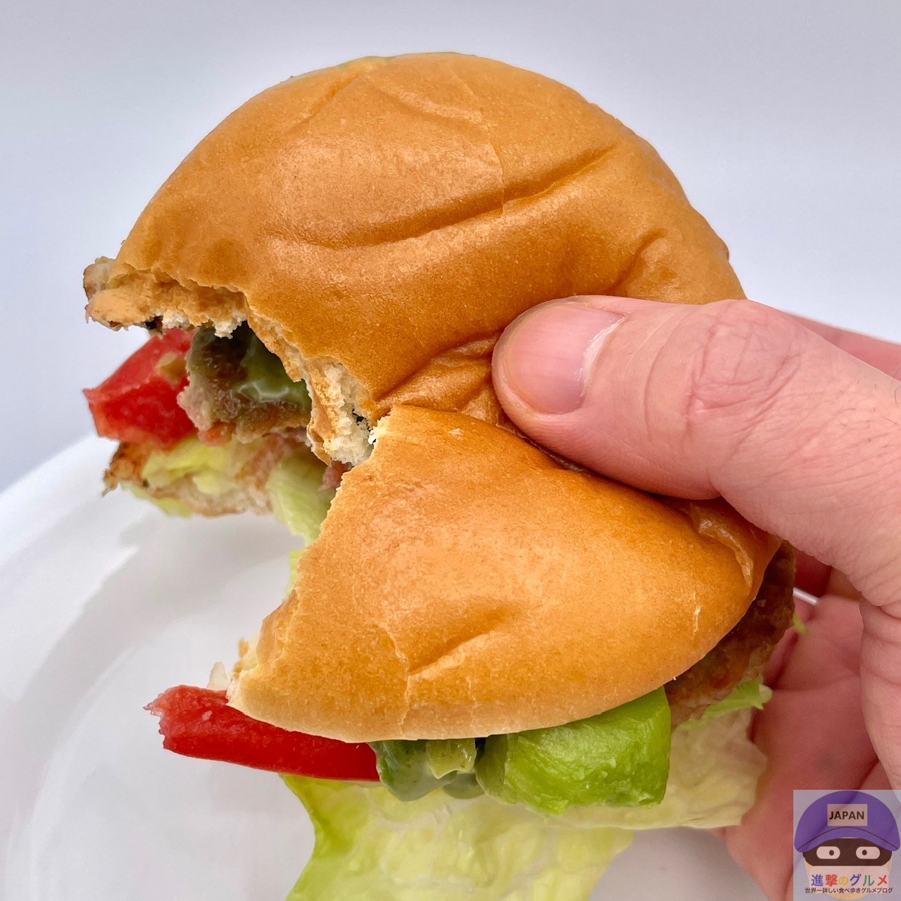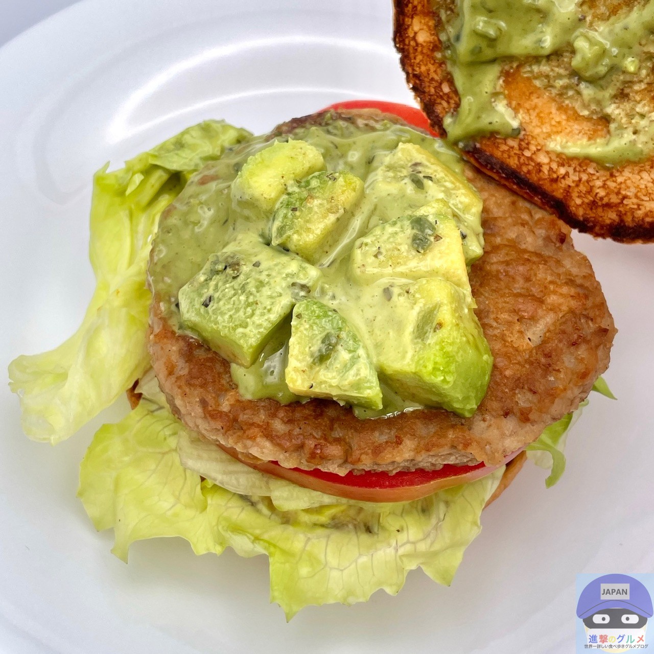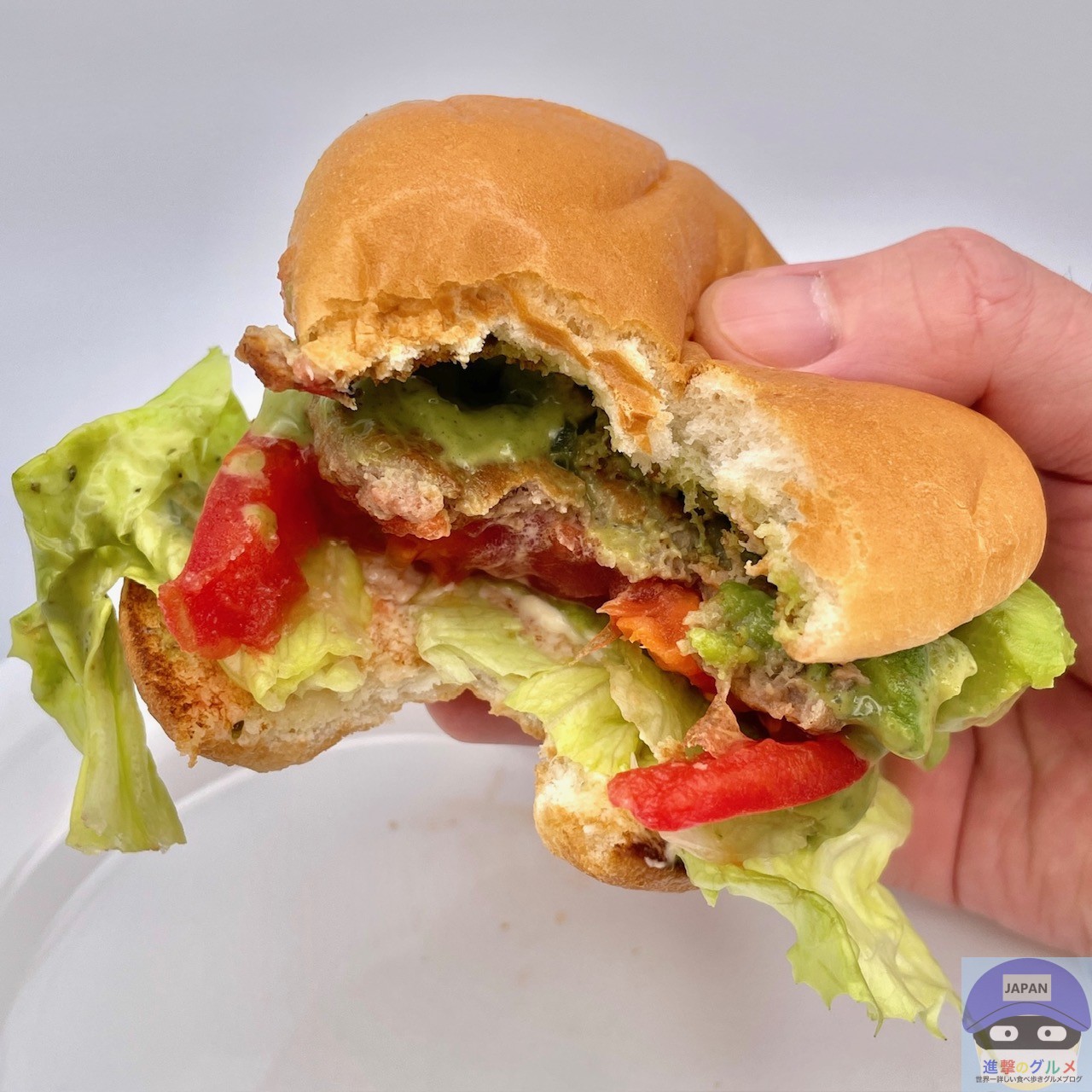 少しふんわりしたバンズで口どけは普通、やわらかいアボカドダイスの味わい、オリジナルワカモレ風ソースのドレッシングのような酸味を感じます。