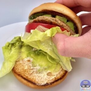 個人的に、具材に対してバンズが小さめで受け止めきれていないため、全体の一体感が弱めです。
