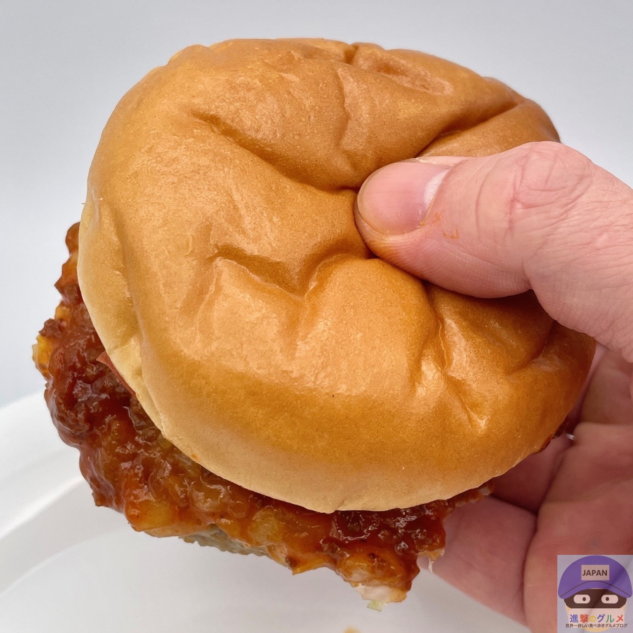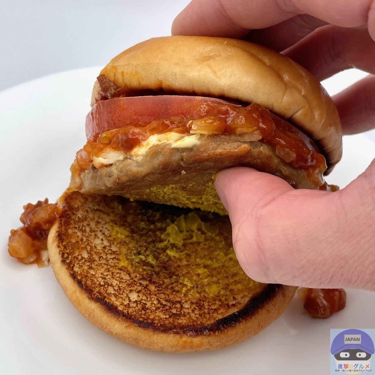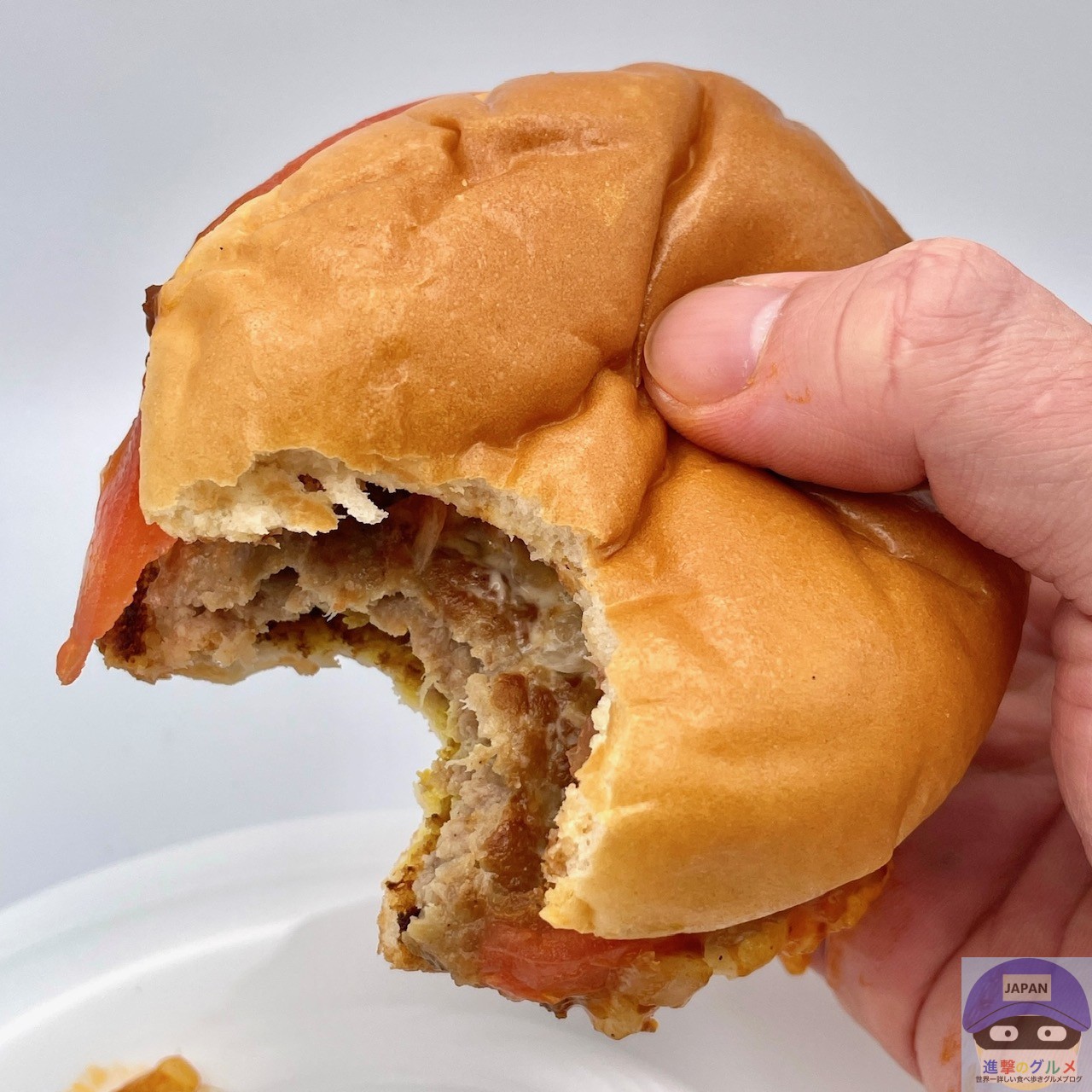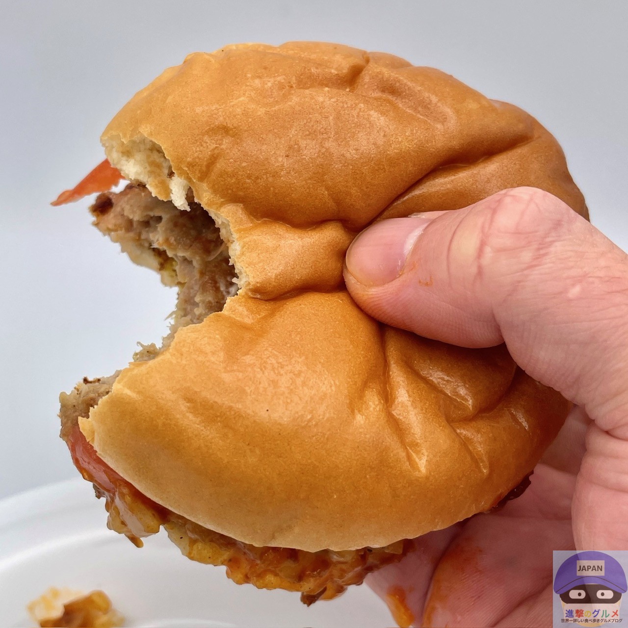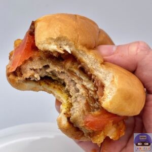 少しふんわりしたバンズで、やわらかいハンバーガーパティは、子供向けのような甘みのあるハンバーグに似た味付けがしっかりされています。