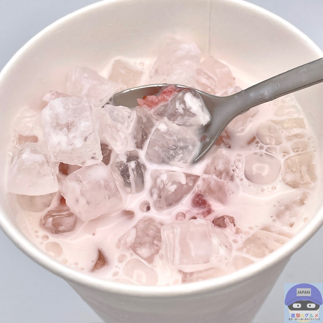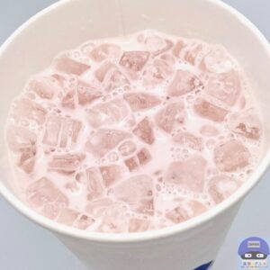 フタをはずすと、牛乳、栃木県産「とちあいか」を使用したいちごソース、氷を合わせてたシンプルな見た目です。