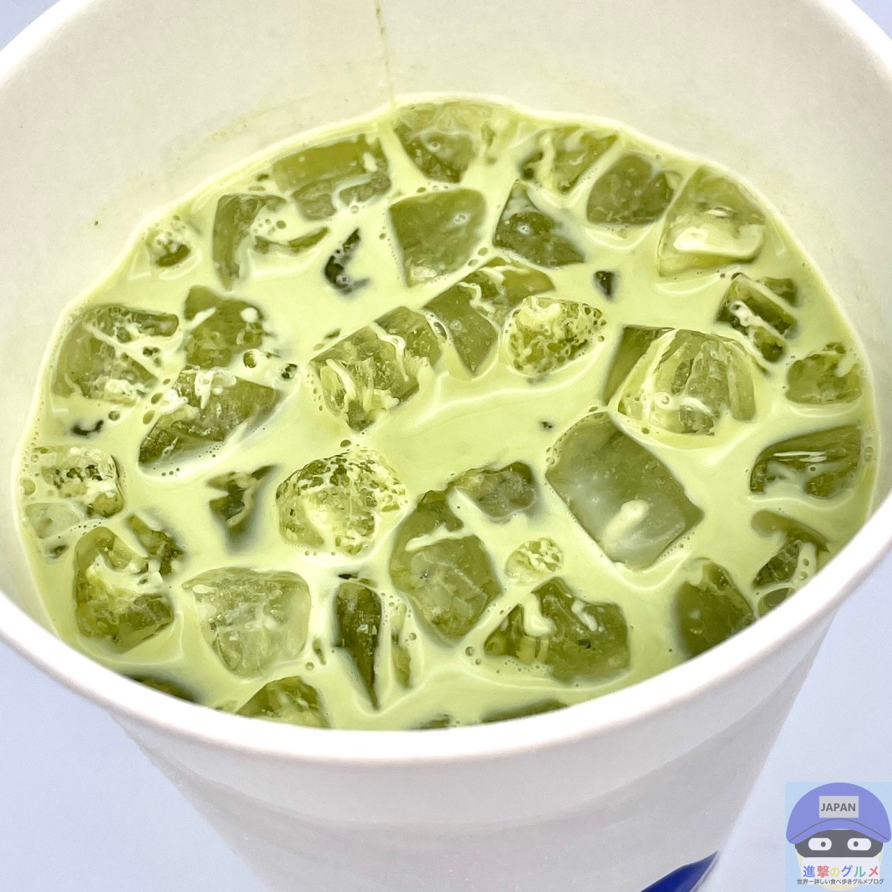 すでに抹茶ソースとミルクが混ざっています。