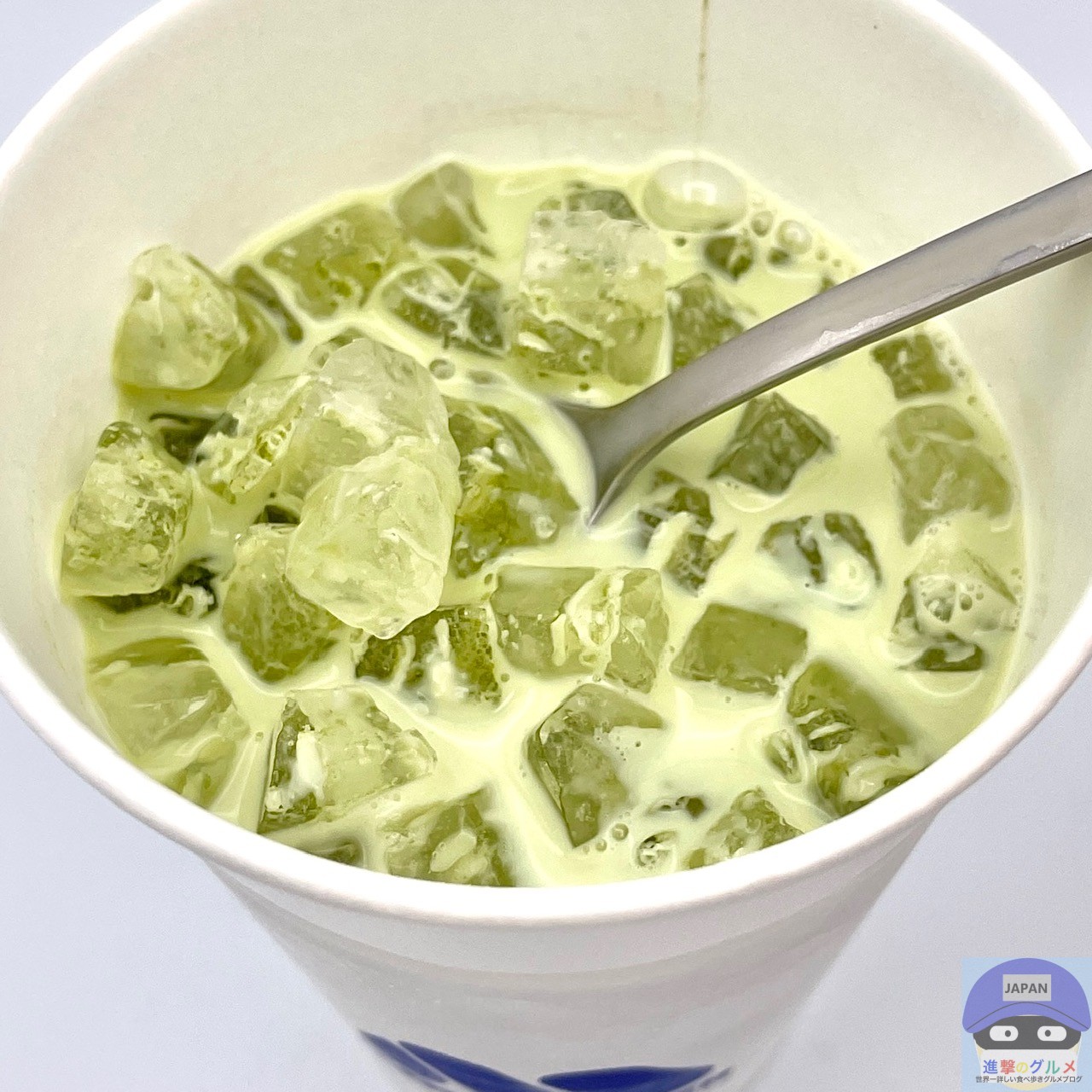 ひんやり甘さ控えめで抹茶のほろ苦さや渋み、香りをしっかり感じ、牛乳は、程よくコクのあるすっきりした味わいです。