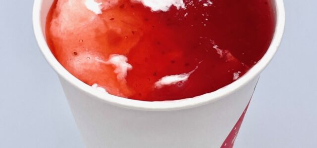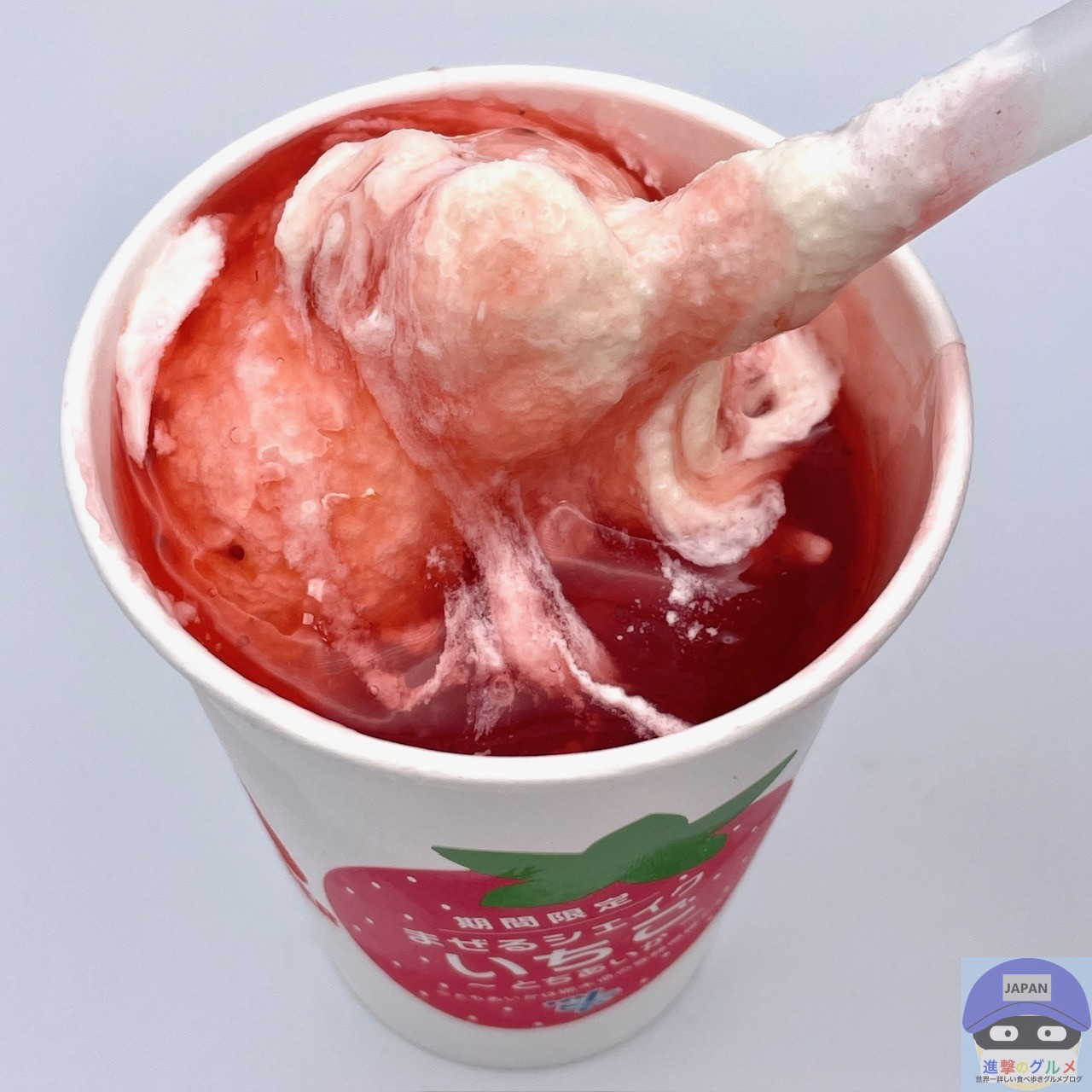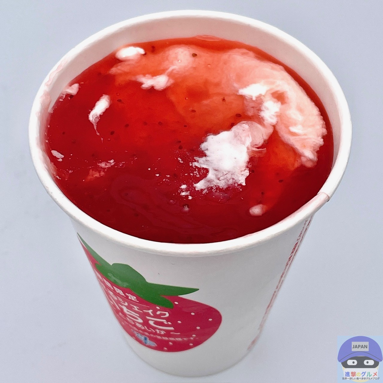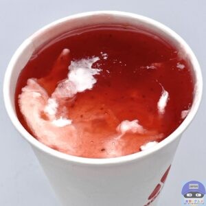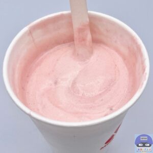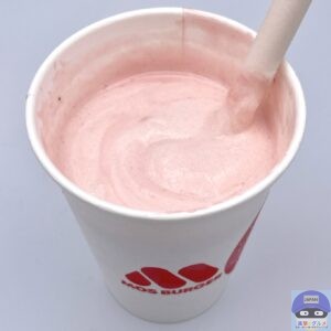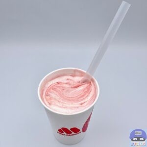 少しシャリッとしたバニラシェイクのややコクのある甘みに、甘酸っぱいいちごの爽やかな味わいが合わさってクセになります。