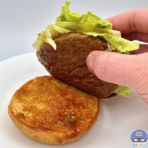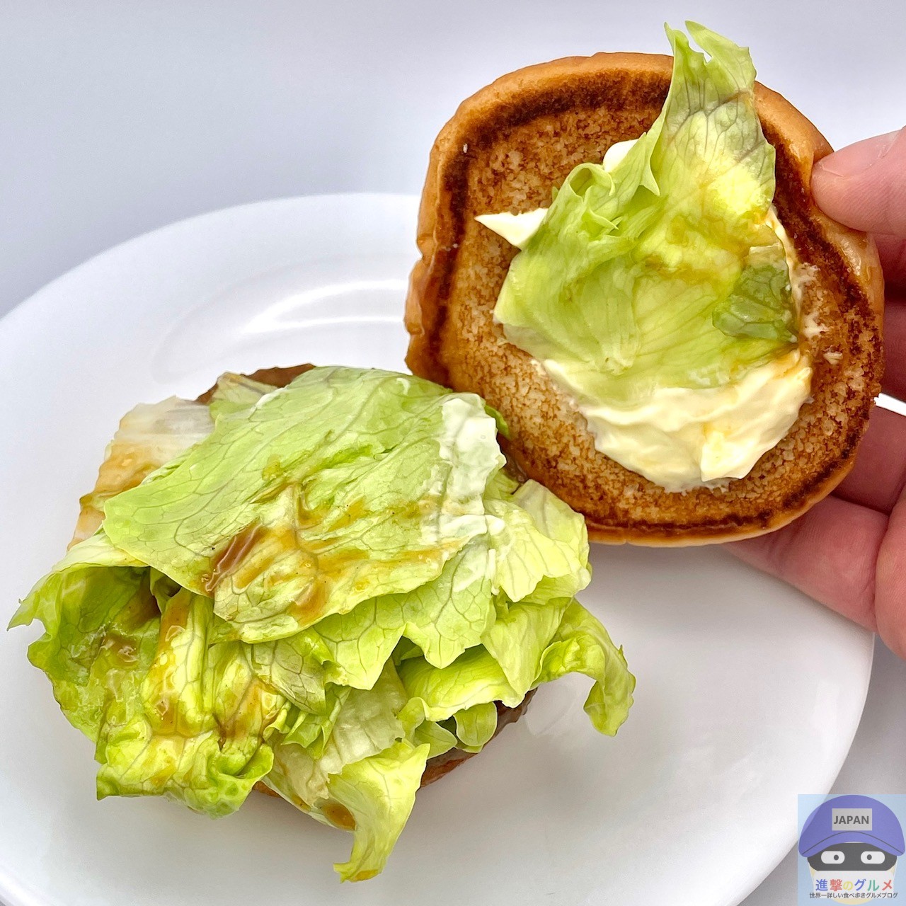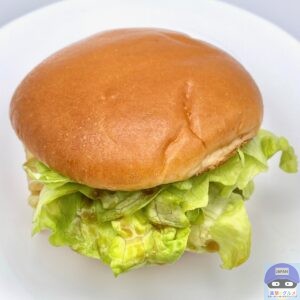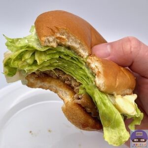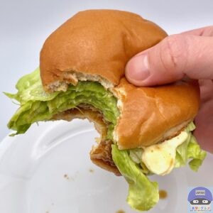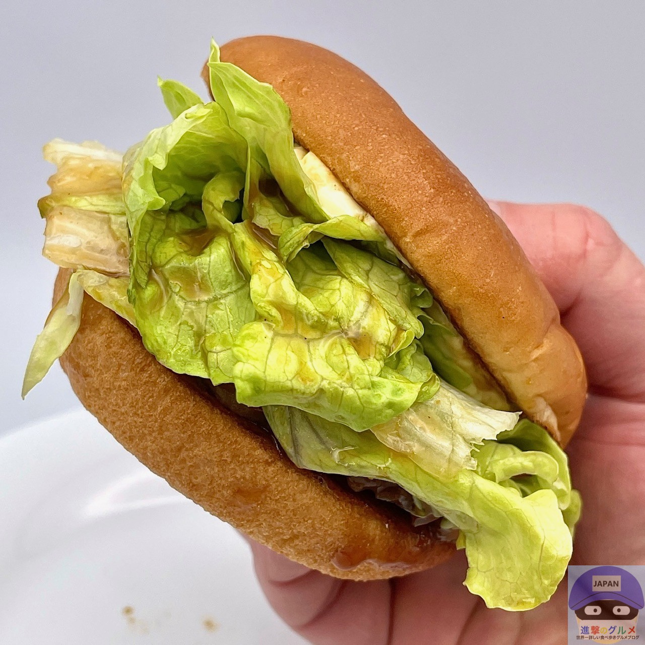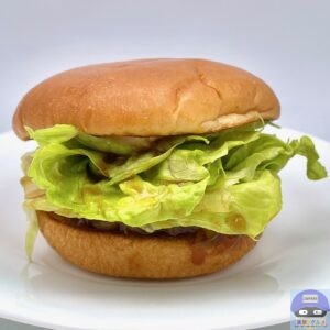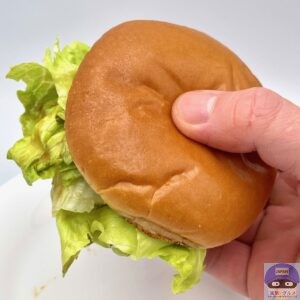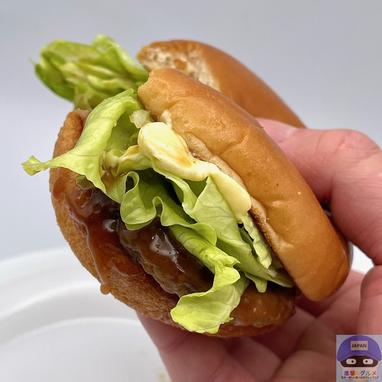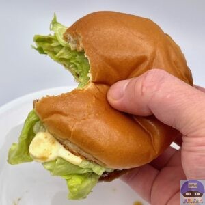少しふんわりしたバンズで口どけは普通、テリヤキソースは優しい甘さ、やわらかいハンバーガーパティは子供向けのような甘みのあるハンバーグに似た味付けがしっかりされています。