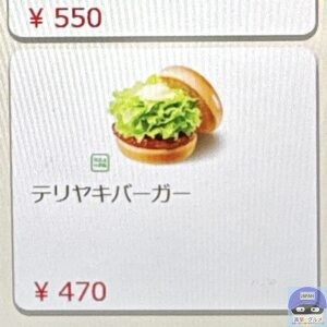 店舗へ向かい、「テリヤキバーガー(470円)」を注文してテイクアウトしました。