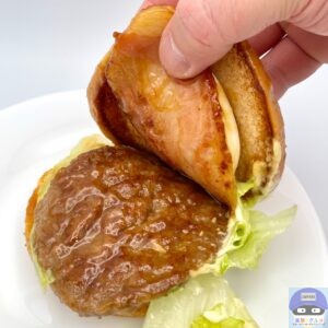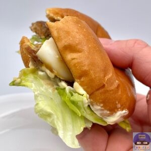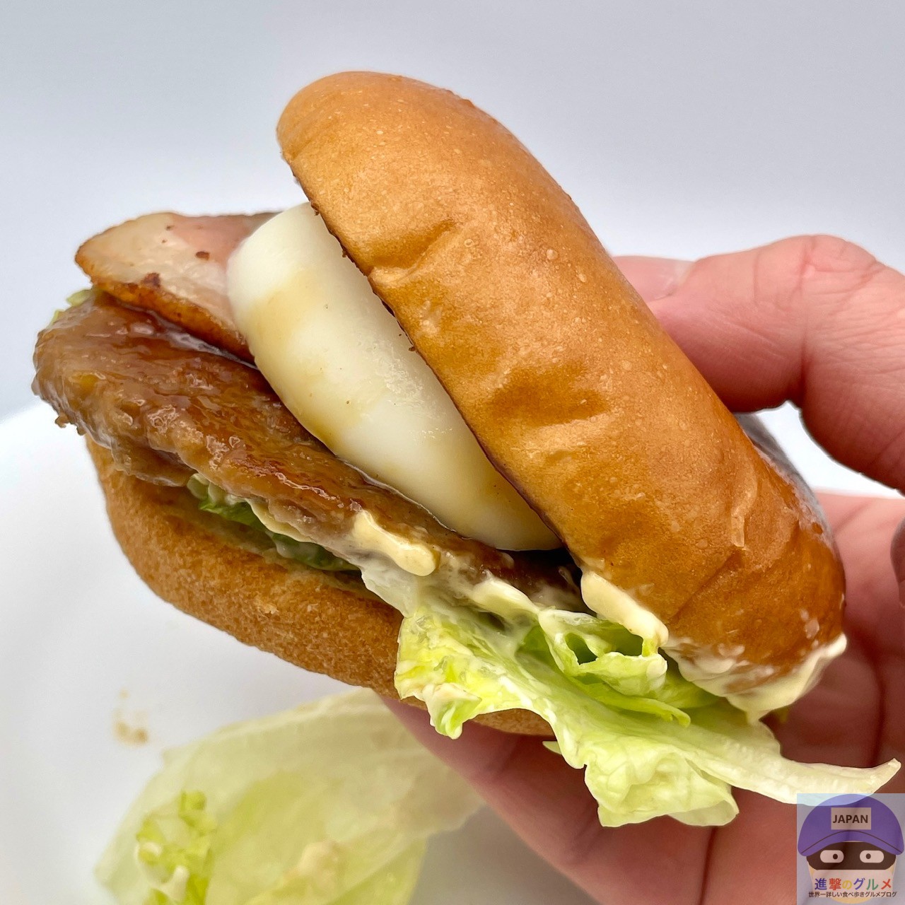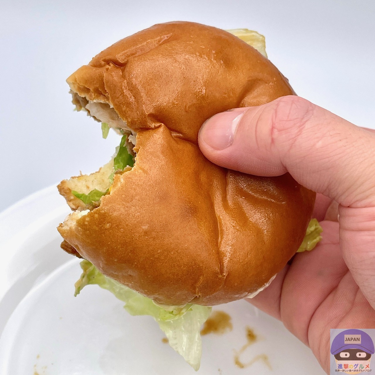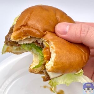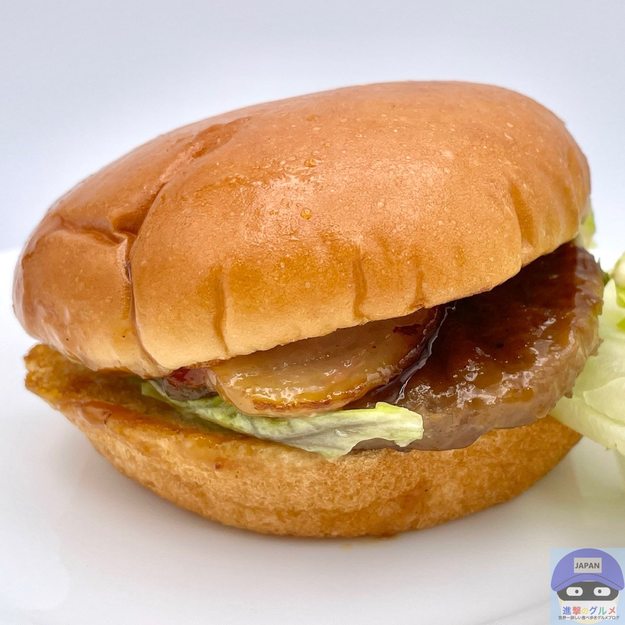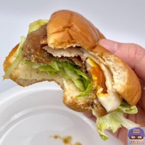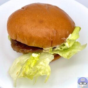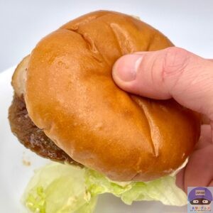 少しふんわりしたバンズで口どけは普通、テリヤキソースは優しい甘さ、やわらかいハンバーガーパティは子供向けのような甘みのあるハンバーグに似た味付けがしっかりされています。