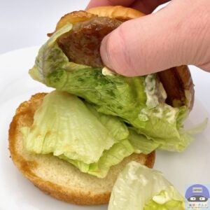 厚みがあり、ざっくりカットしたレタスがバンズからはみ出た新作バーガーです。