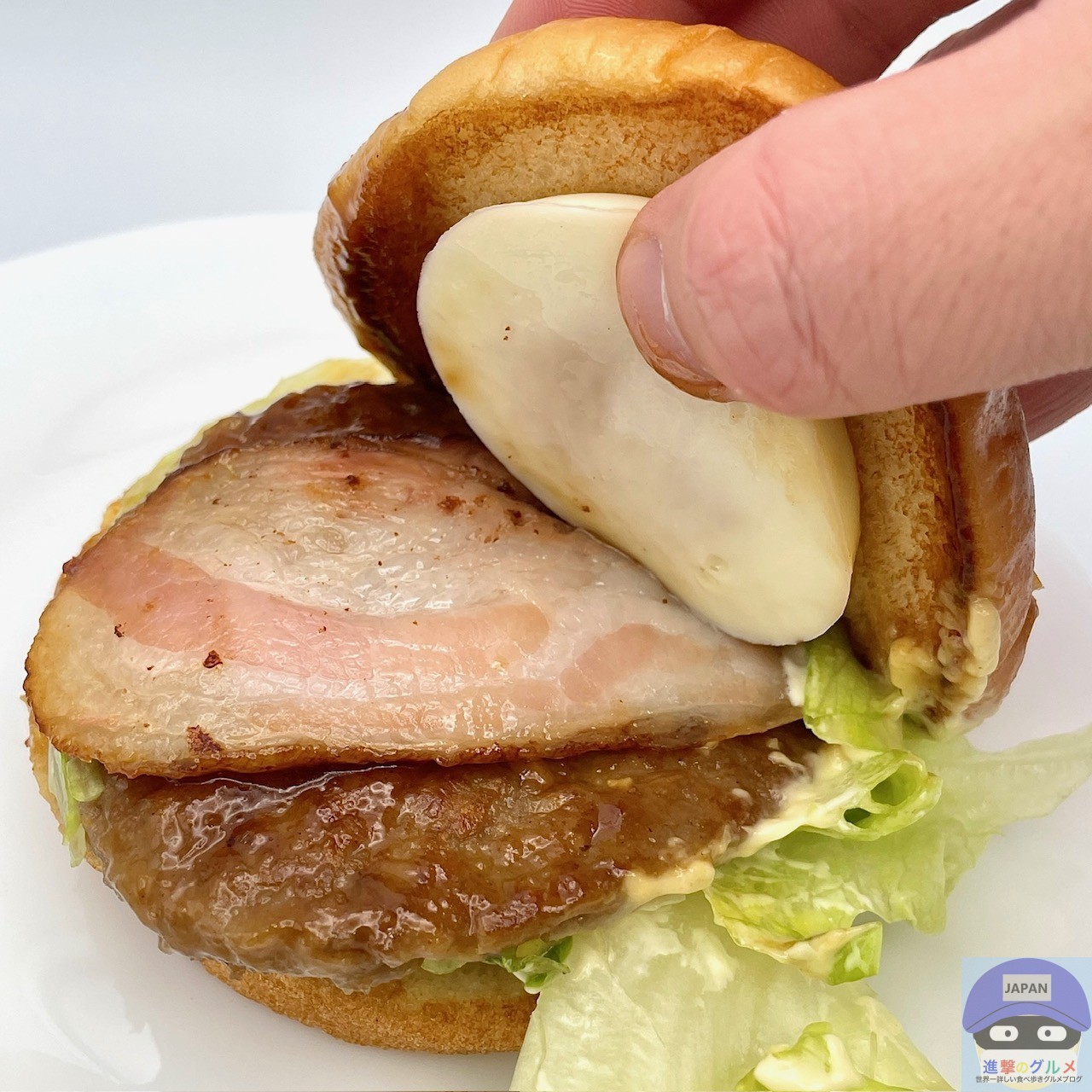 「チーズベーコン テリヤキバーガー(590円)」は、チーズのコクとベーコンの燻製の香りを感じられる味わいに仕上げた一品です。