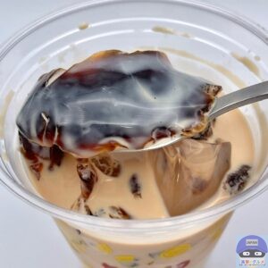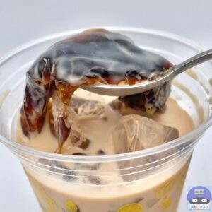 ドロッとややかための黒糖ゼリーの奥深い和風の甘み、ミルクティーの香り高く上品な味わいを感じます。