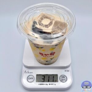 重さをはかると、容器を含めて311gでした。