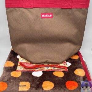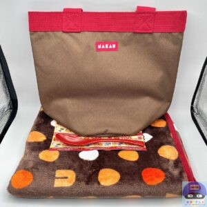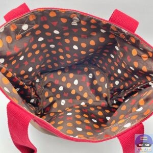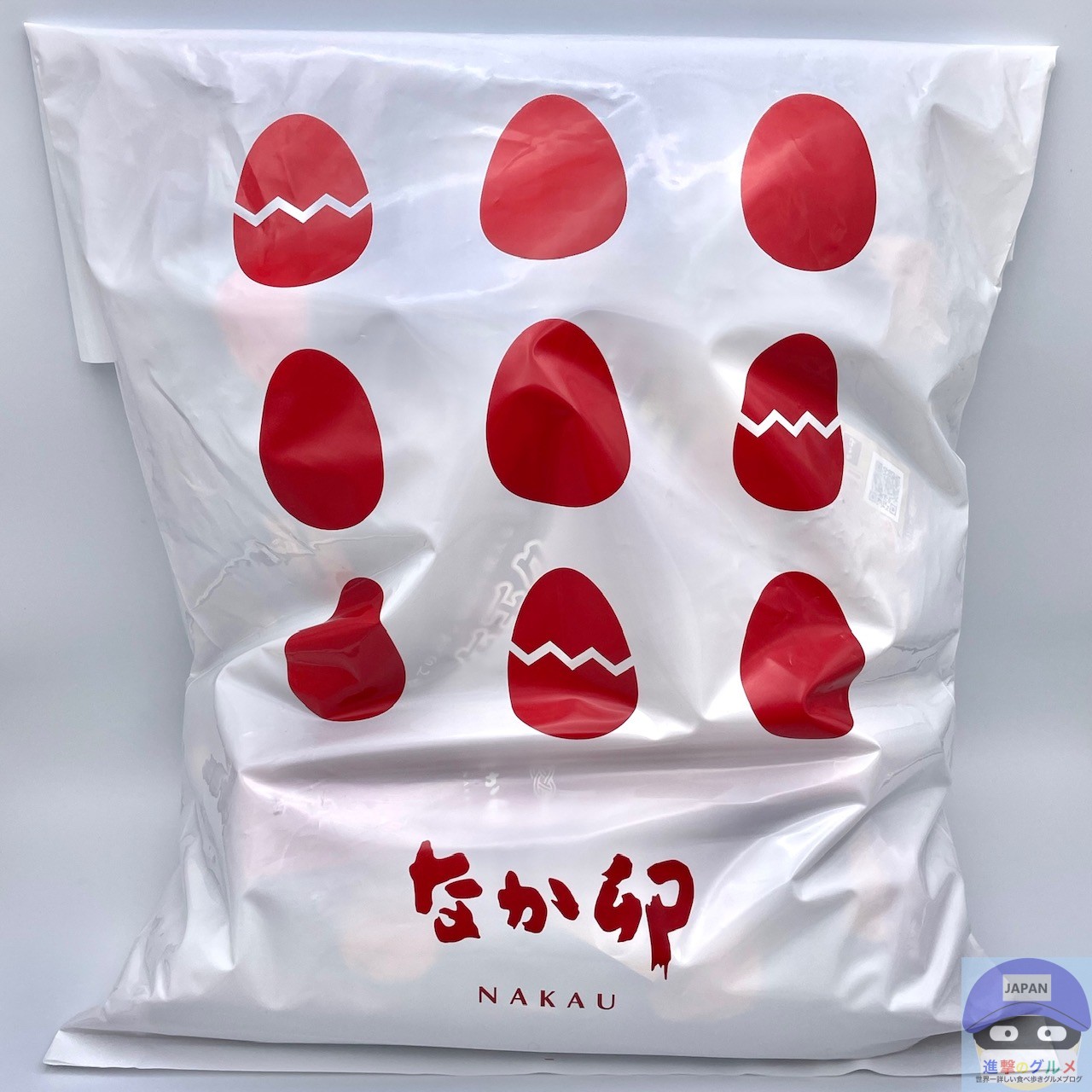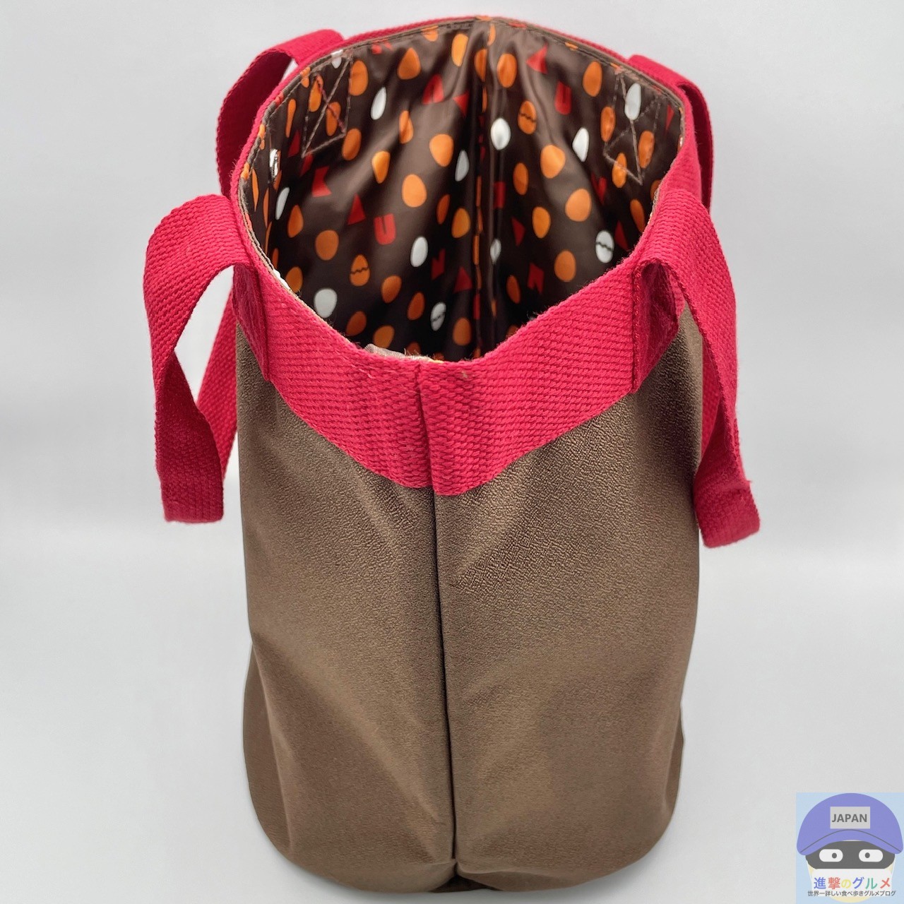 約タテ28.5×ヨコ34.5×マチ21cm、なか卯の赤いワッペンがポイント、落ち着いた色合いです。