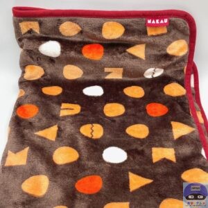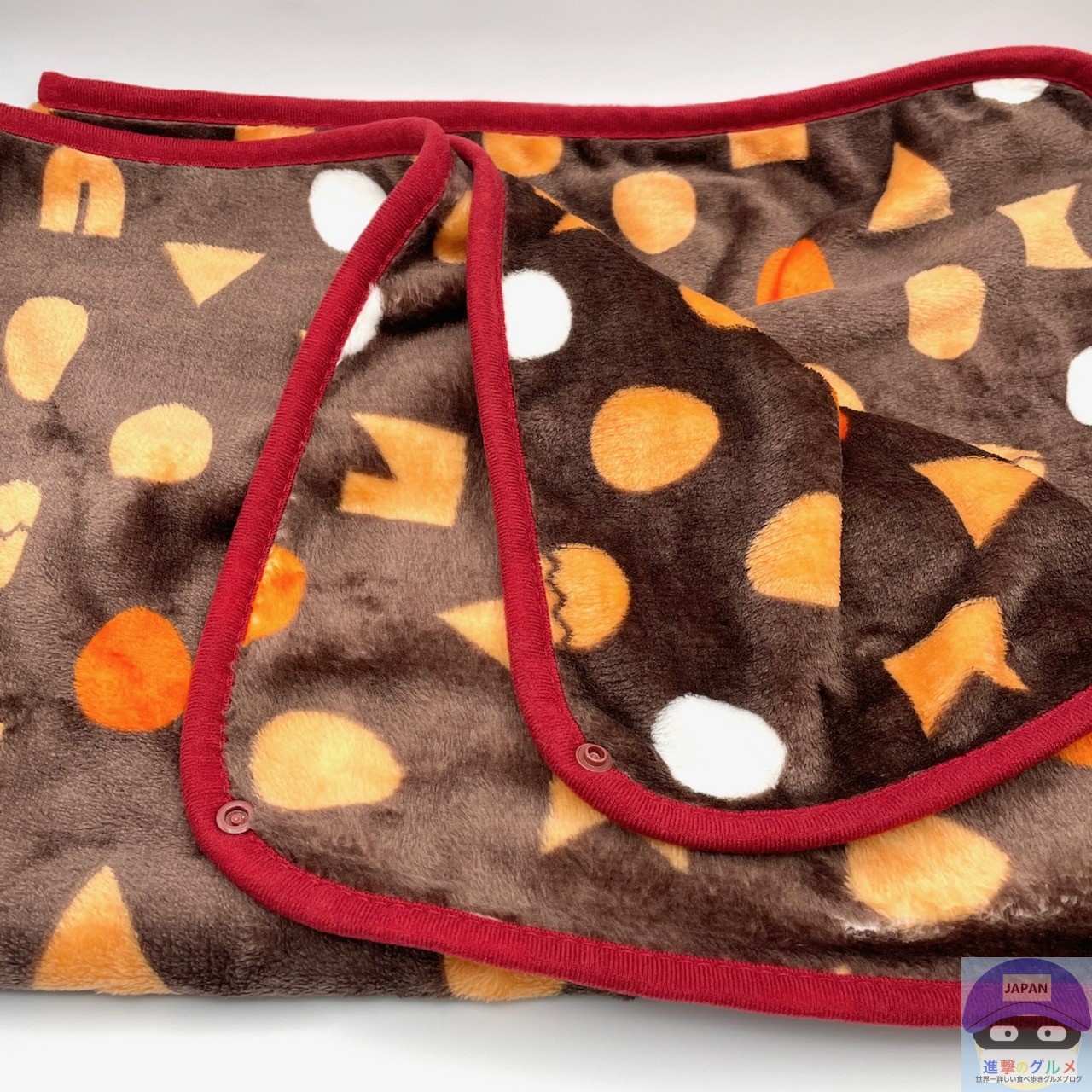 約タテ70×ヨコ100cm、ふんわりさらっとして肌触りが良く、ボタン付きで羽織った際に前で留められる仕様です。
