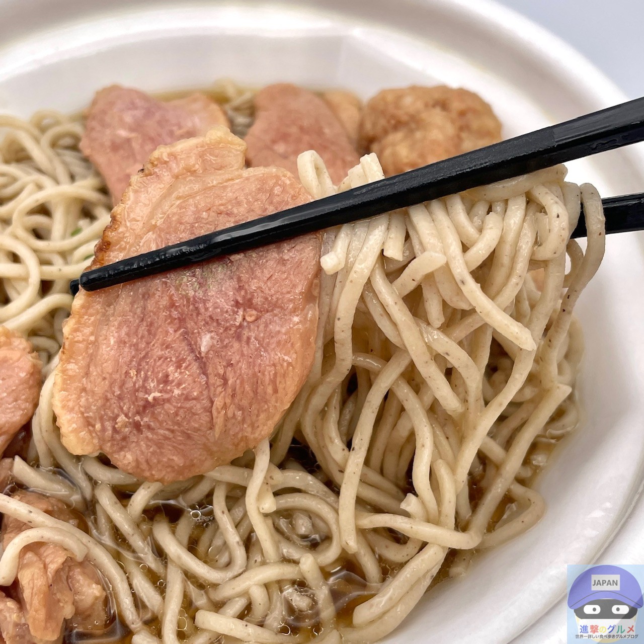鴨もも肉は、やわらかくて甘辛く味付けされています。